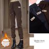 Calças de moletom casuais forradas de lã outono e inverno femininas engrossadas cintura alta quente florescentes tornozelo amarrado solto emagrecedor calças esportivas