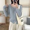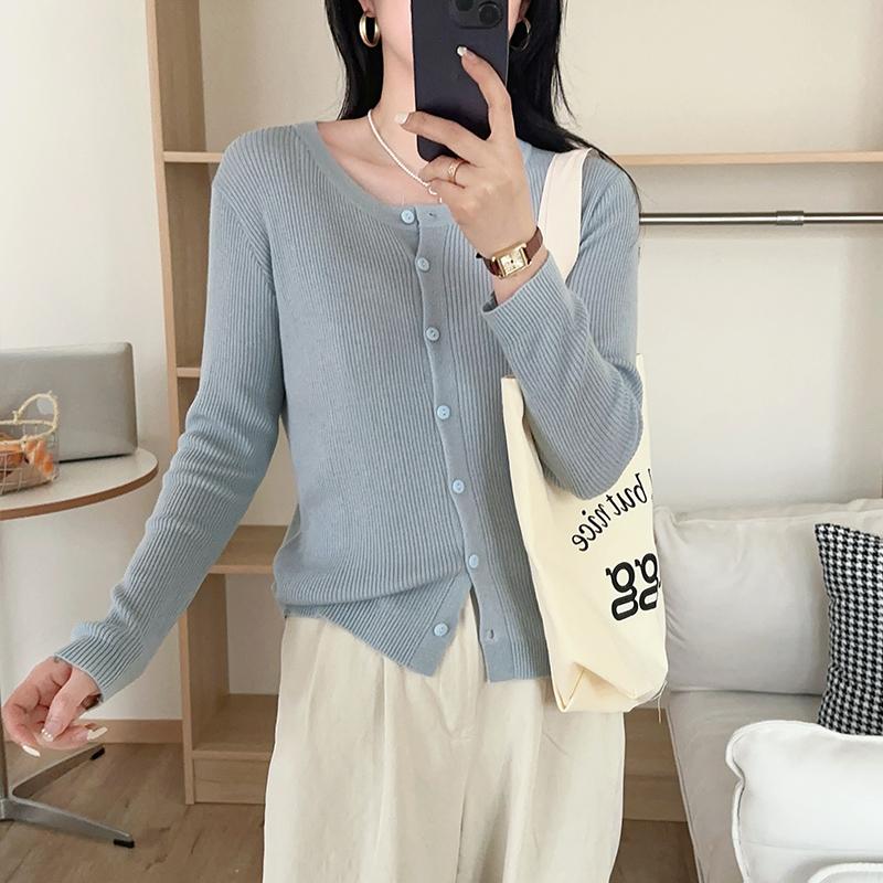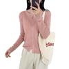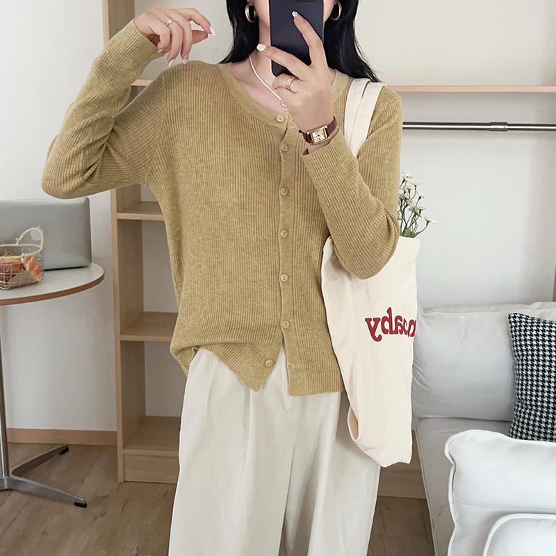 Cardigã de Tricô Fino Estilo Coreano para Mulheres 2025 Novo Cor Sólida Versátil Jaqueta Suéter de Primavera para Primavera e Outono