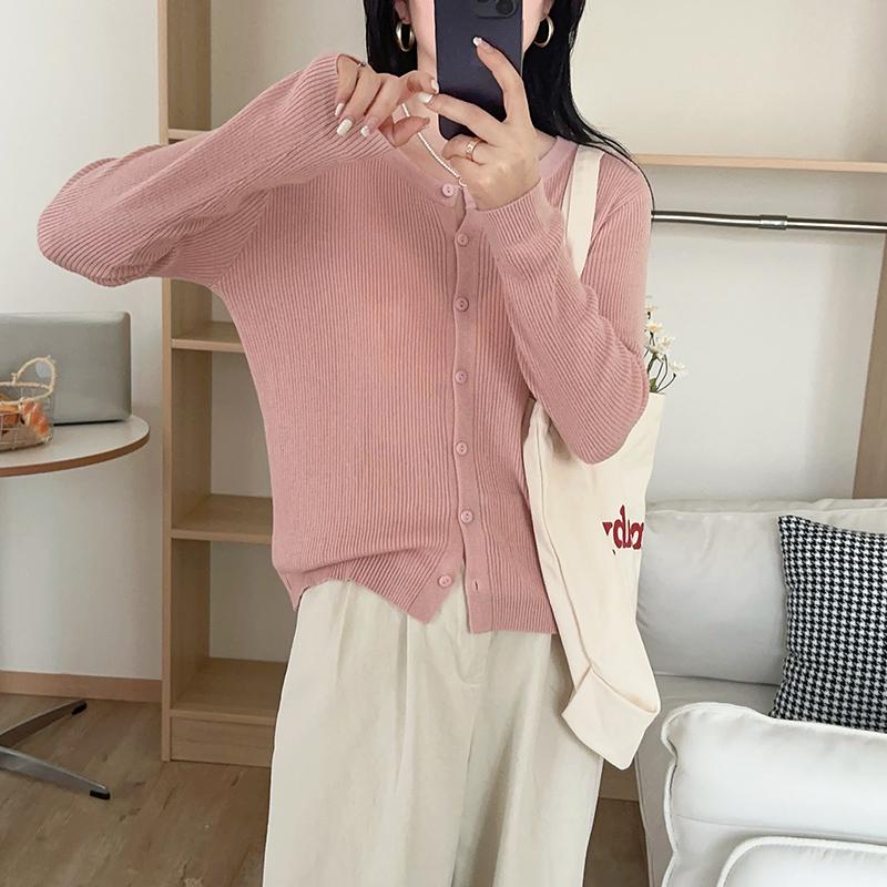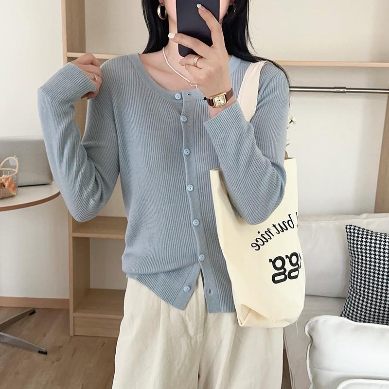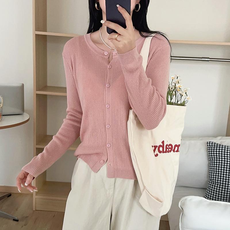 Estilo coreano topos fino cardigan de malha feminina 2024 novo estilo cor sólida all-match primavera camisola jaqueta primavera e outono estilo