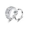 Anel de casal Anel feminino Prata Moda Abertura Ajustável Simulação Anel de diamante Tanabata Namorada Jóias masculinas