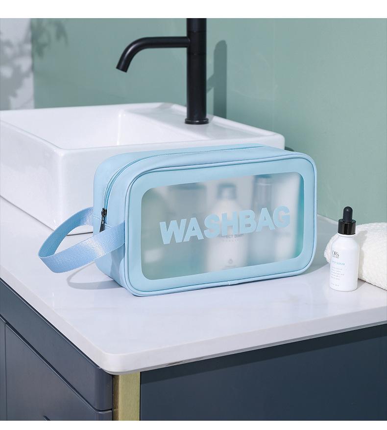 Bolsa de cosméticos transparente de PU estilo Ins PVC portátil fosco banho à prova d'água bolsa de lavagem portátil bolsa de armazenamento de cosméticos