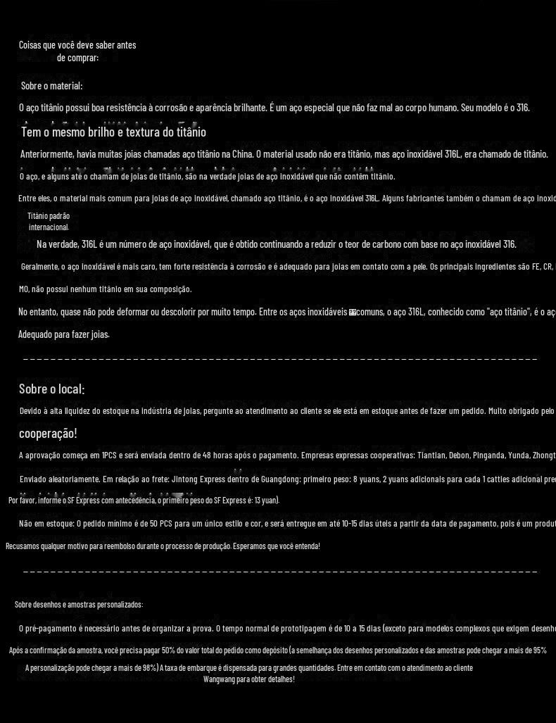 Sobre materiais e mão de obra do produto