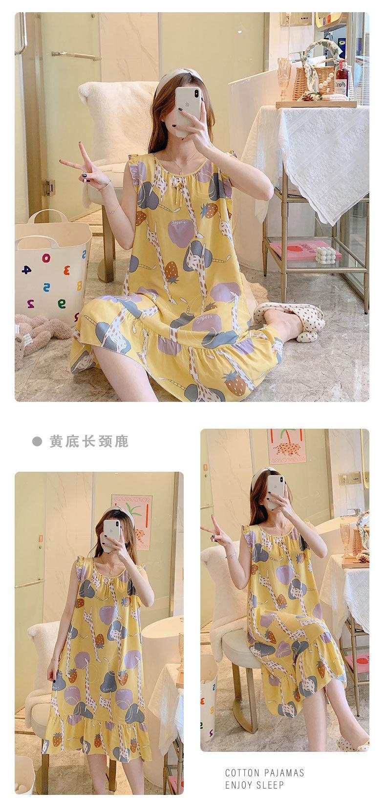 Compre Vestido estilo princesa coreano 2025, fofo, solto, algodão artificial, roupa de casa, camisola de seda e algodão, feminino, verão, fino no atacado no Joom.pro