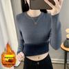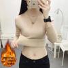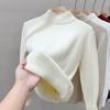 Suéter de caxemira grosso de uma peça, camisa de base forrada de lã para outono e inverno, suéter feminino com gola meia alta e renda interna, top quente
