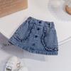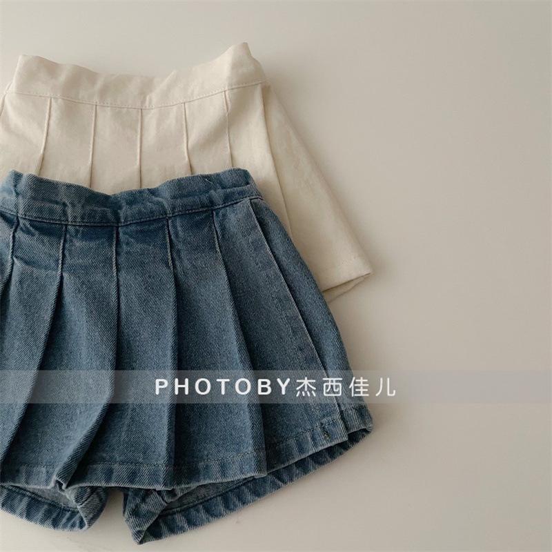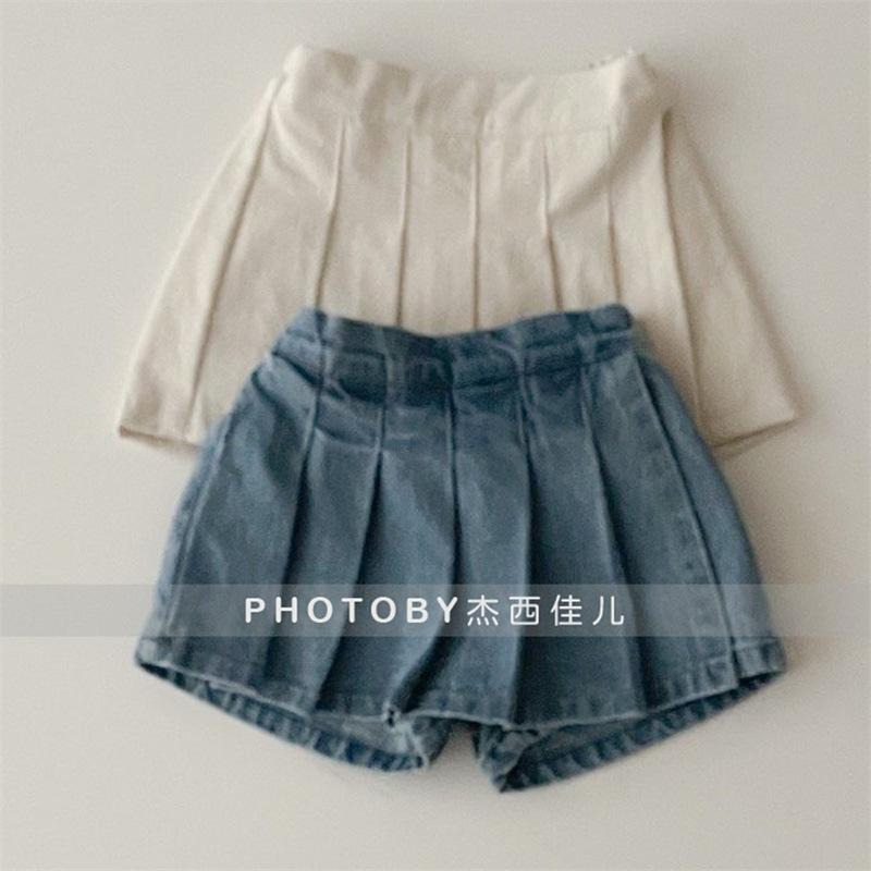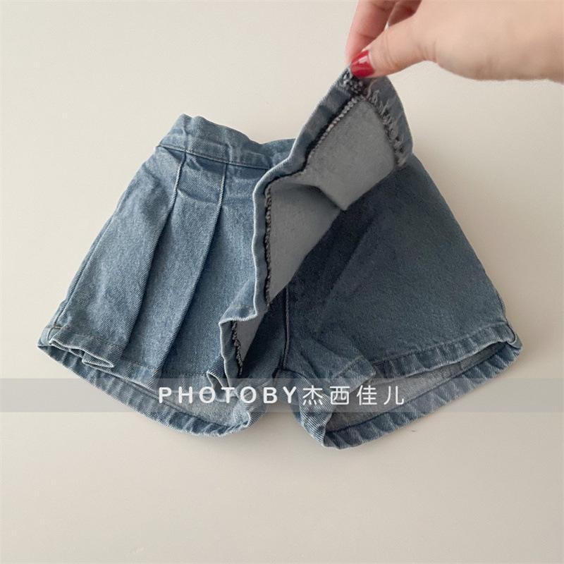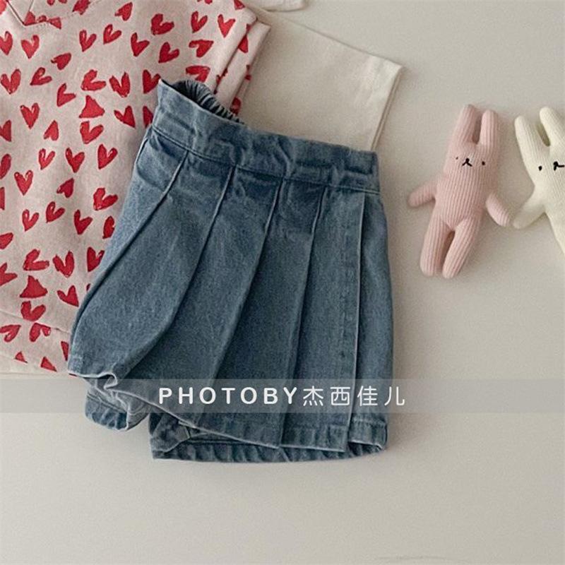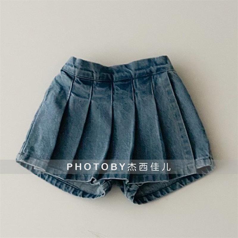Infantil Ins Estilo Coreano Moda Verão Nova Menina Bebê Estilo Ocidental Estilo Acadêmico Denim Saia Plissada Culottes