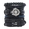 Pulseira de couro com espírito de aventura e navegação bússola, joias transfronteiriças, pulseira masculina multicamadas feita à mão