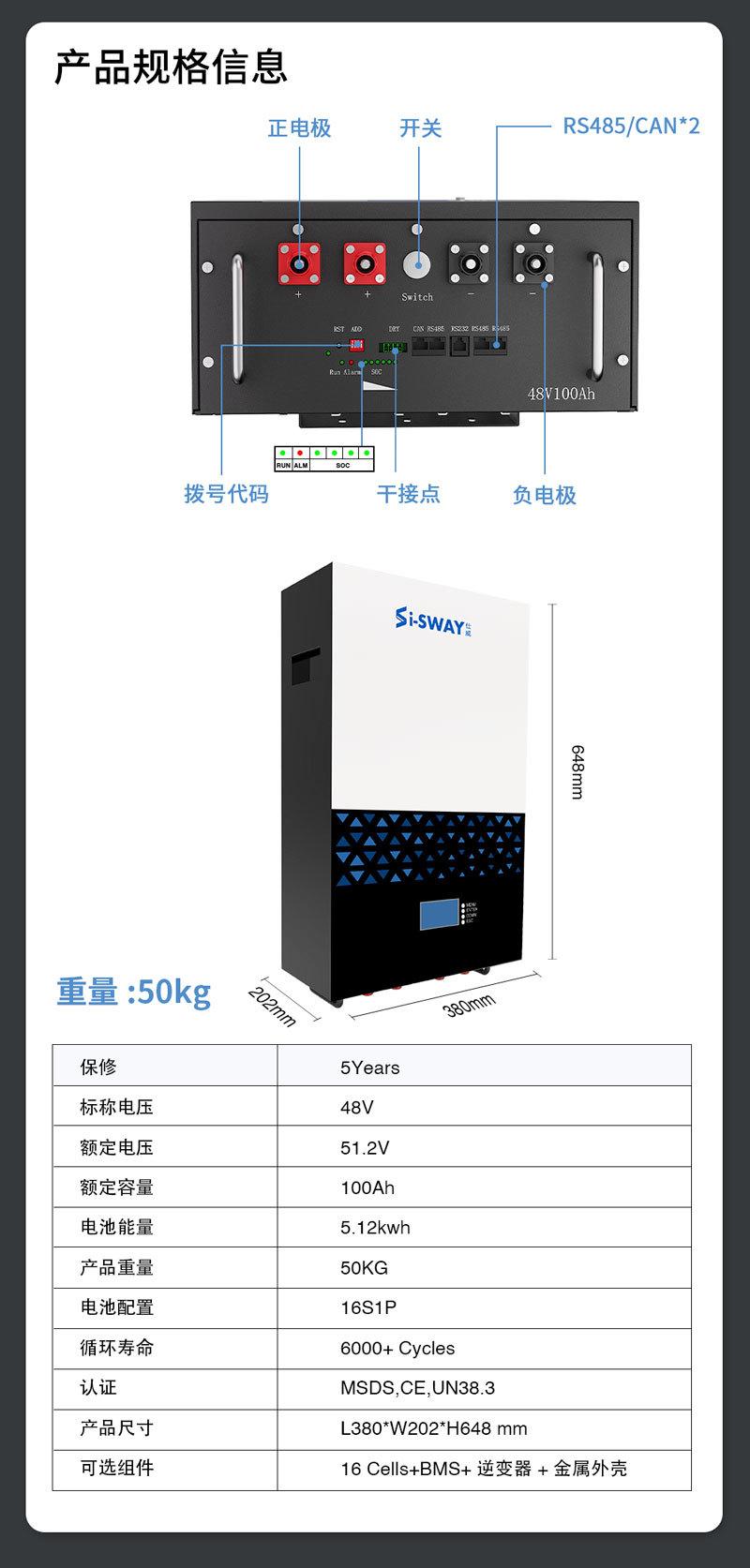 Bateria de fosfato de ferro-lítio de 51,2 V, 5 kWh, bateria doméstica montada na parede, fonte de alimentação de armazenamento de energia solar fotovoltaica comercial