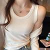 Novo colete de ombro largo de linha para mulheres verão casual nicho interno e externo usar peito cobrindo a cor sólida parte superior para as mulheres