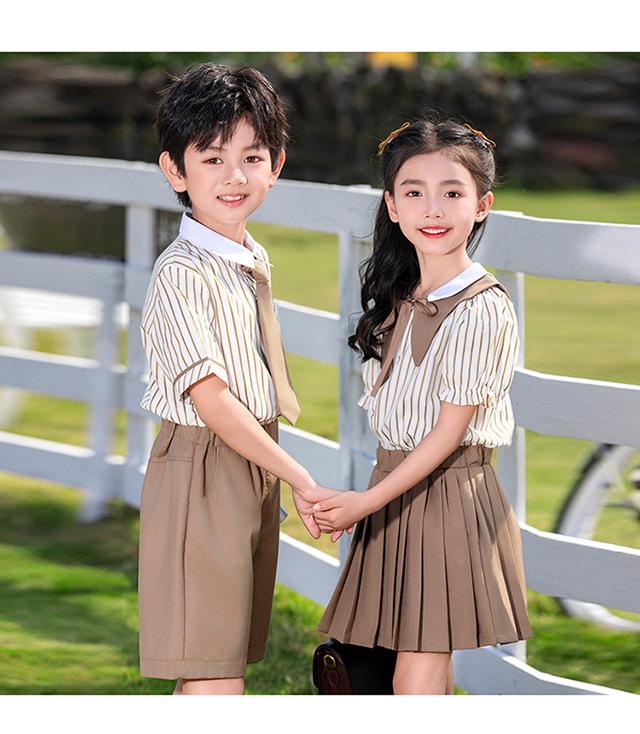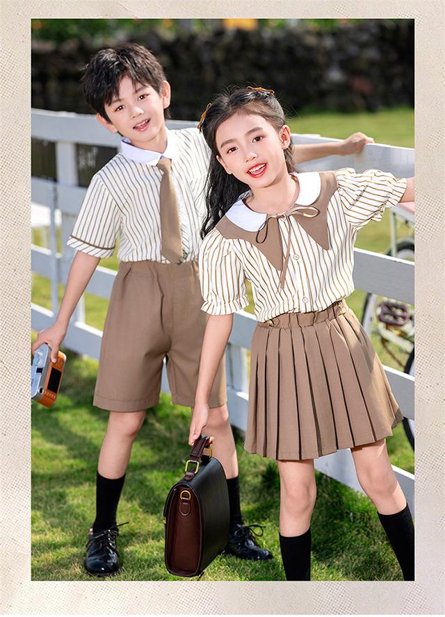 Roupas de jardim de jardim de verão uniforme escolar terno de classe de alunos da escola primária de verão britânico estilo universitário roupas de desempenho roupas de formatura