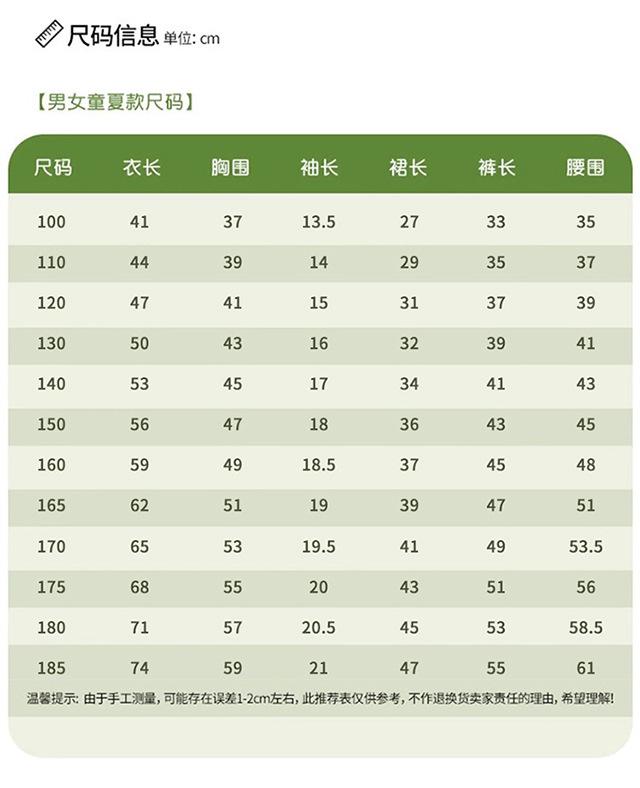 100cm, 110cm, 120cm, 130cm, 140cm, 150cm, 160cm, 165cm, 170cm, 175cm, 180cm, 185cm