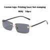 2024 novos óculos de sol quadrados sem aro transfronteiriços óculos de sol gradientes femininos óculos da moda haste de PC multicolorida