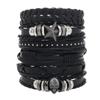Novo Punk Rock Crânio Pulseira Tecida à Mão Elementos de Estrela de Cinco Pontas Pulseira de Couro Multi-camada Masculina