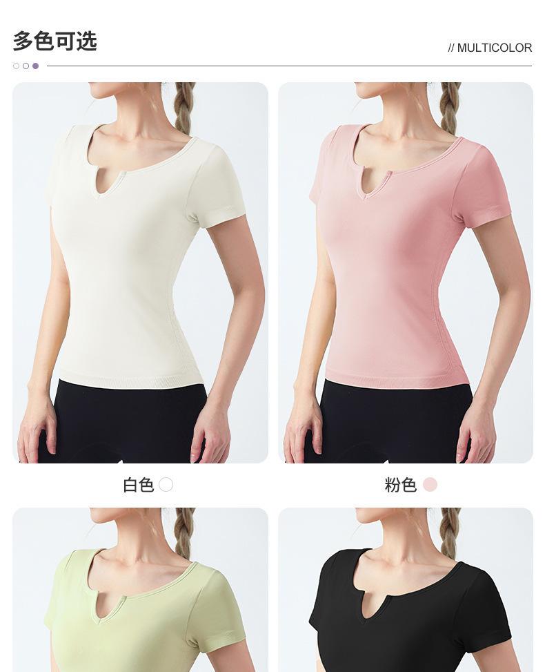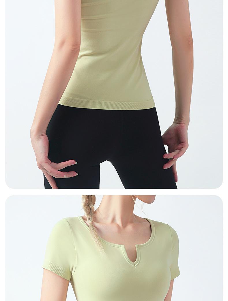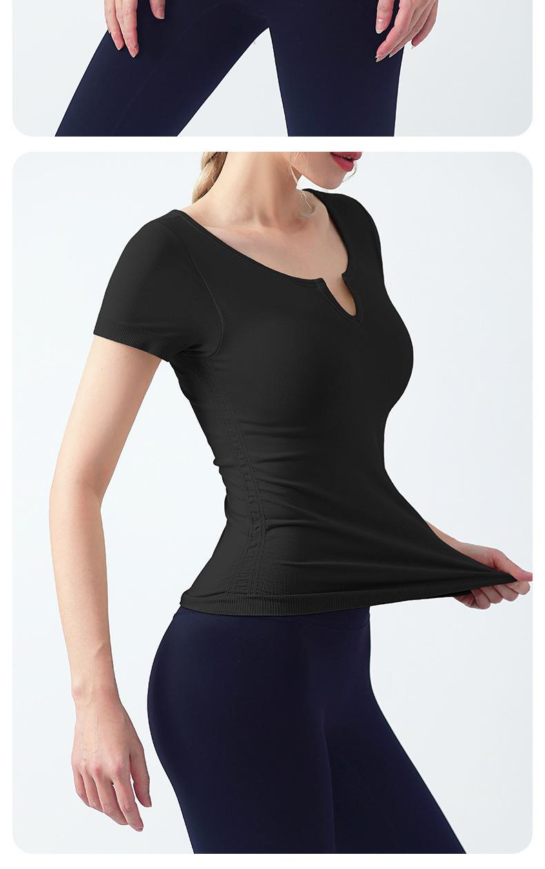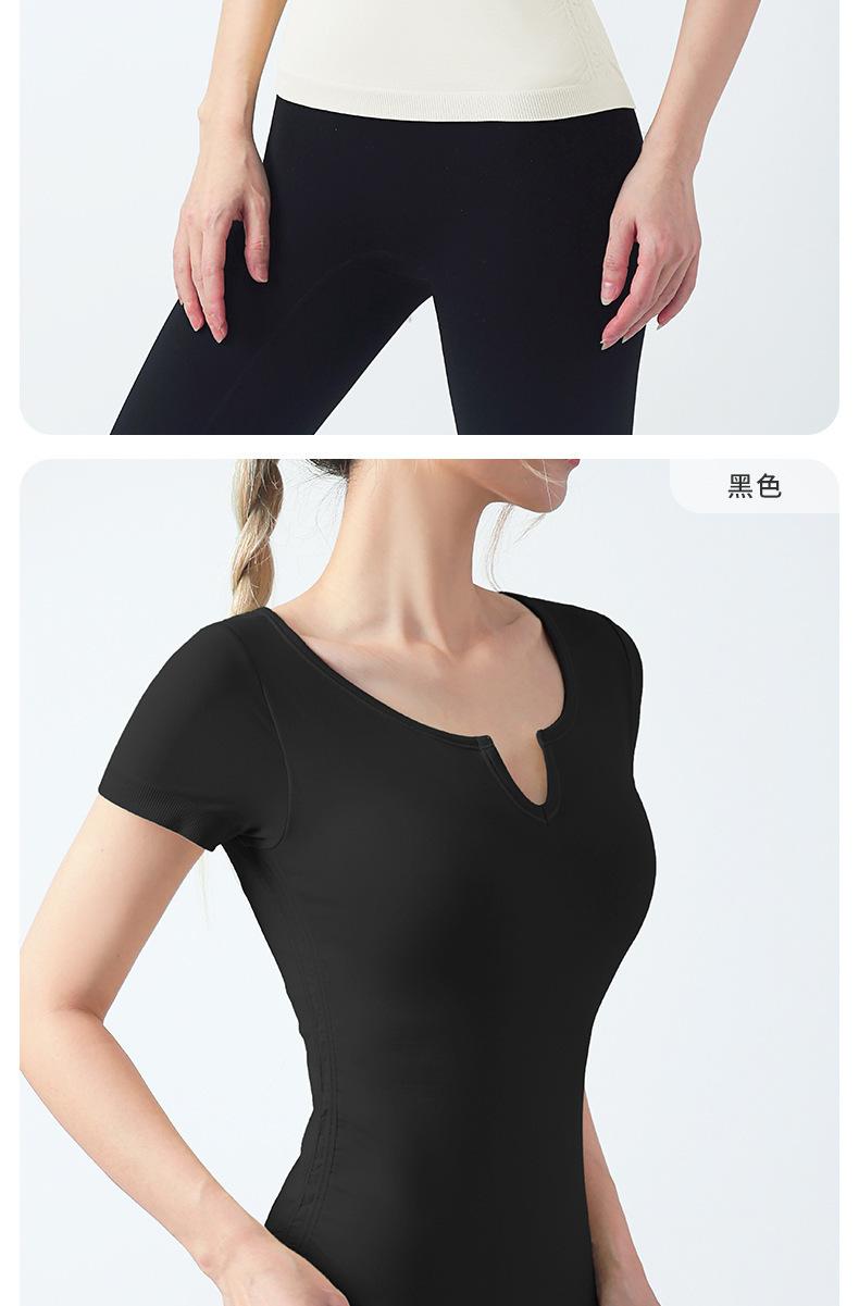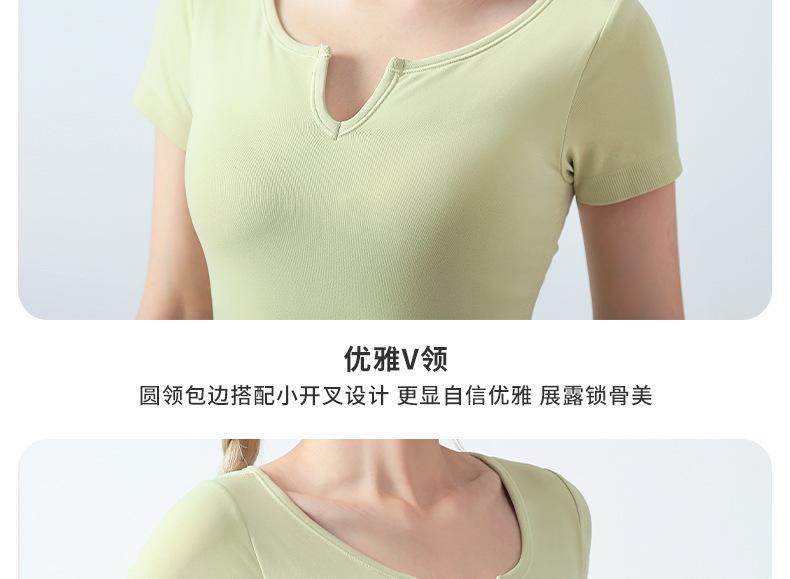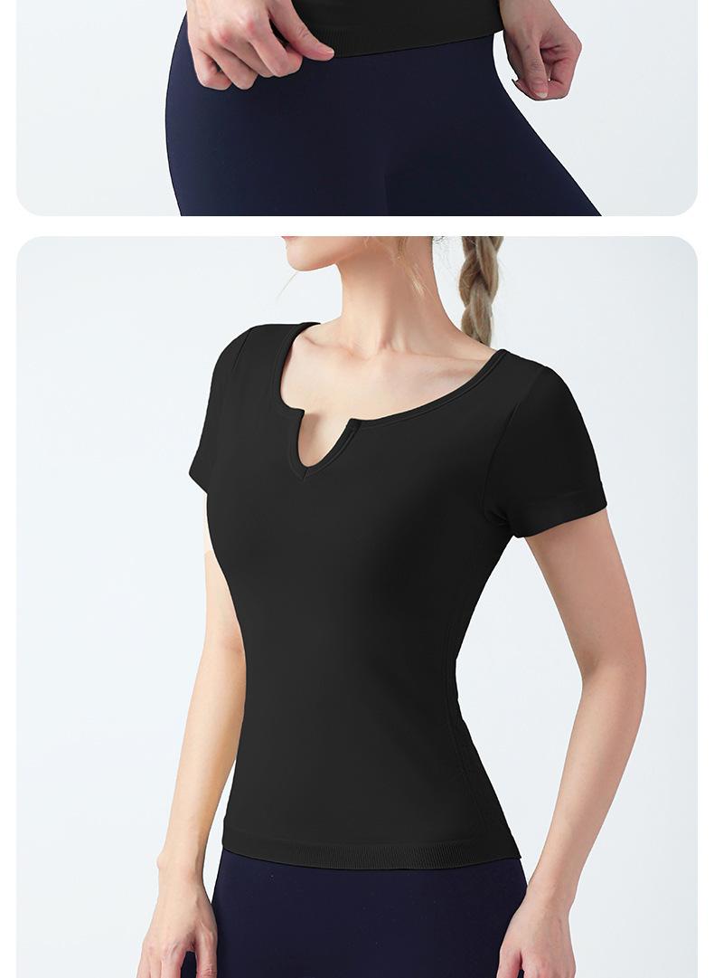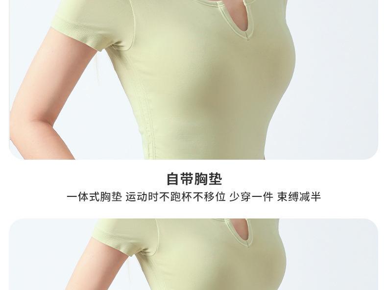 Uso corporal sem costura v-neck com almofada peitoral empurrar para cima fitness emagrecimento de cor sólida esportes yoga manga curta top feminino
