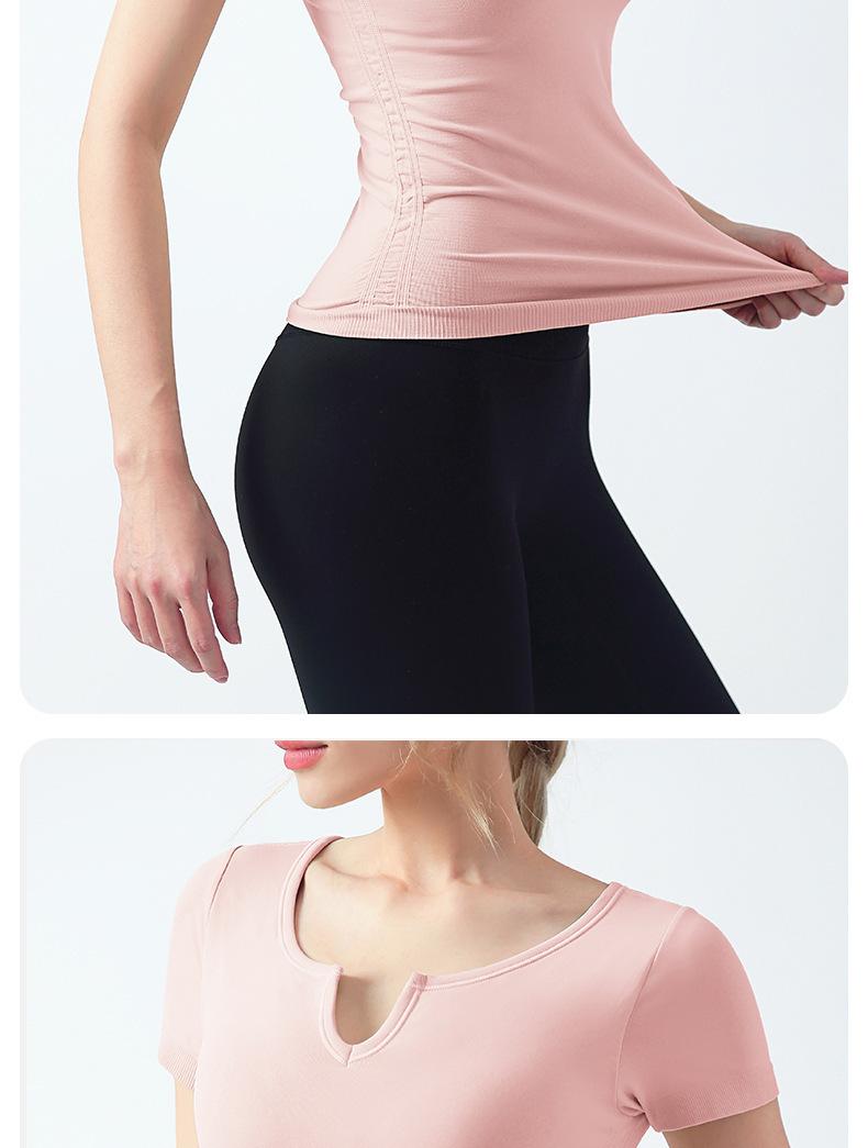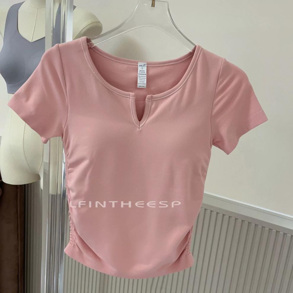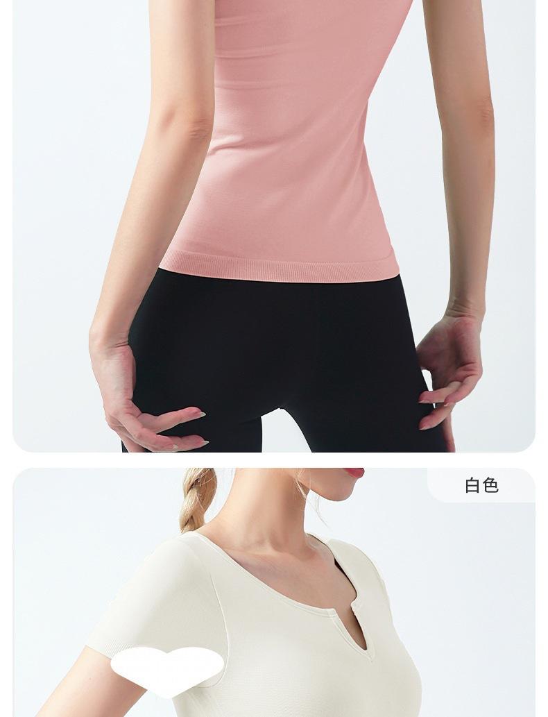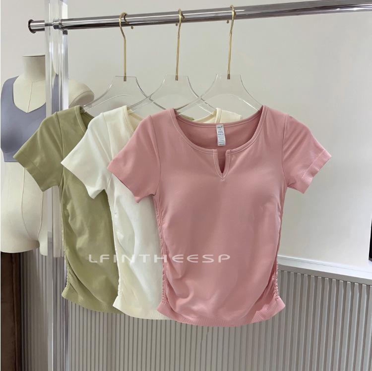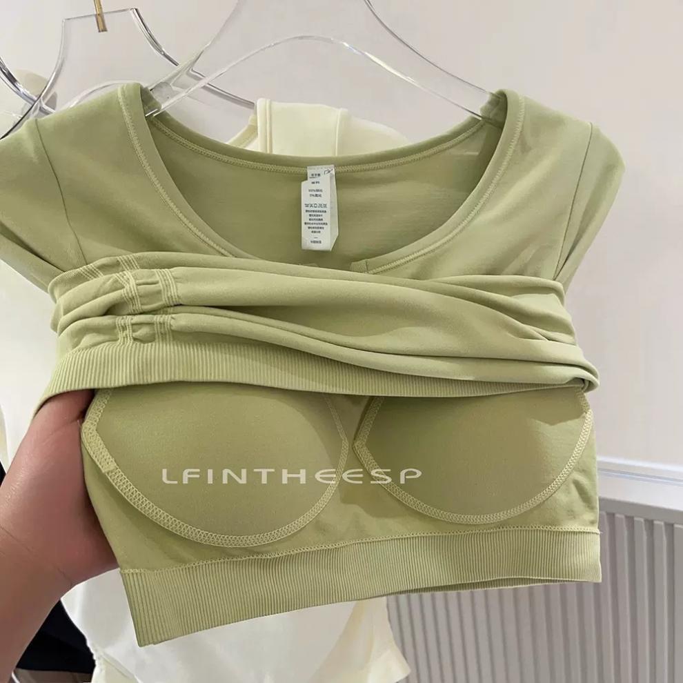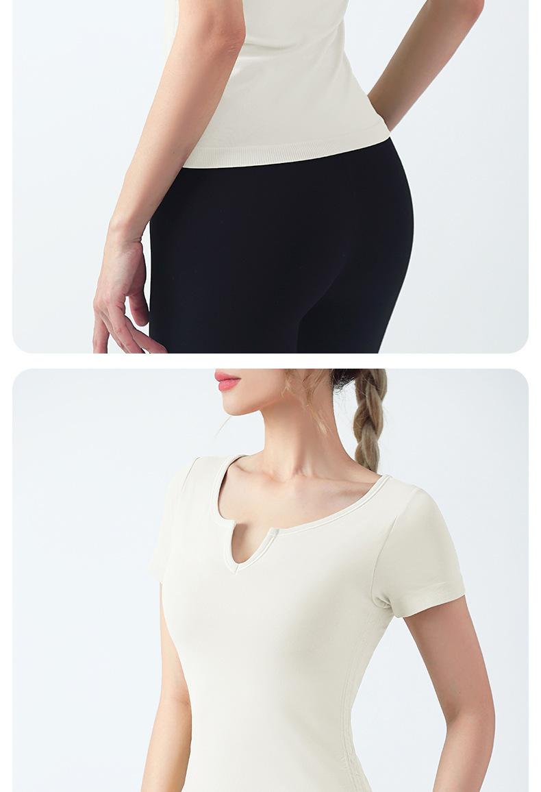 Uso corporal sem costura v-neck com almofada peitoral empurrar para cima fitness emagrecimento de cor sólida esportes yoga manga curta top feminino