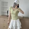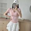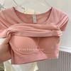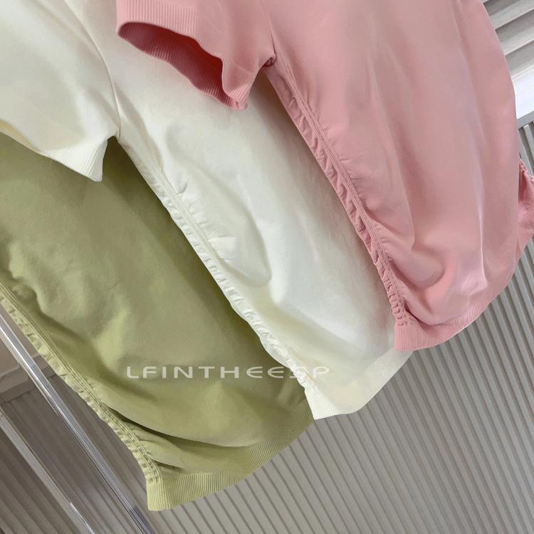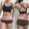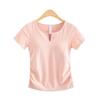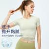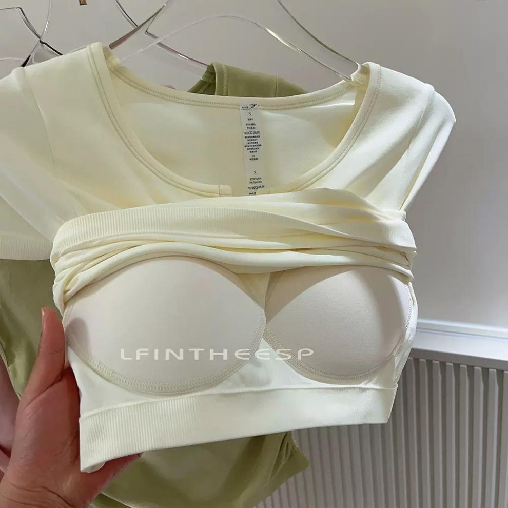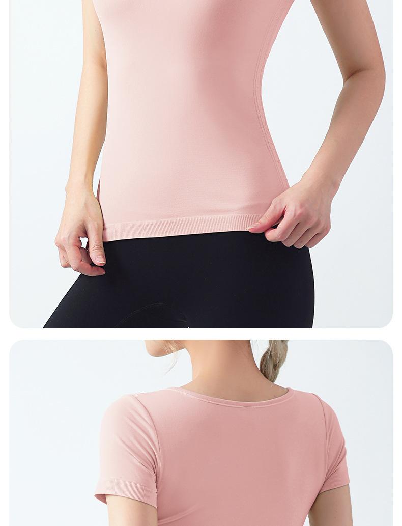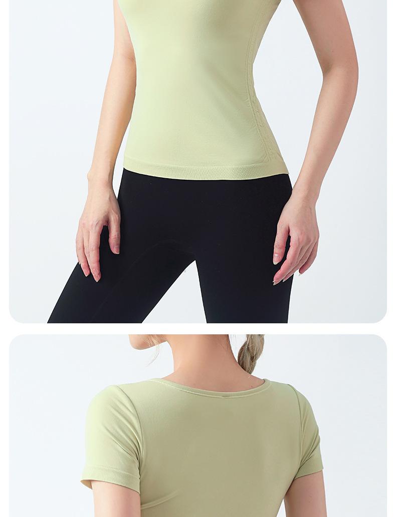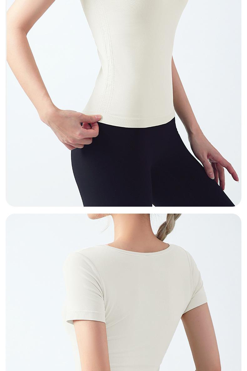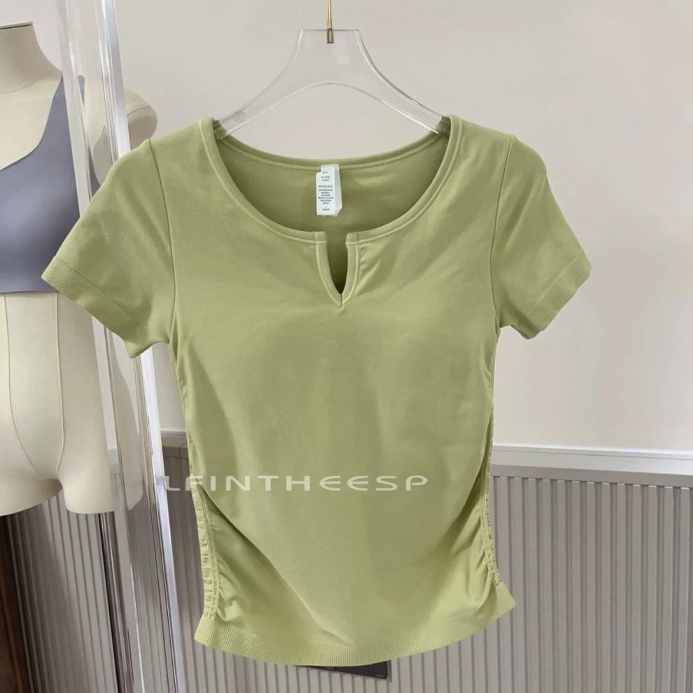 Uso corporal sem costura v-neck com almofada peitoral empurrar para cima fitness emagrecimento de cor sólida esportes yoga manga curta top feminino