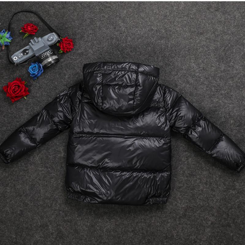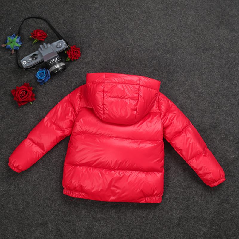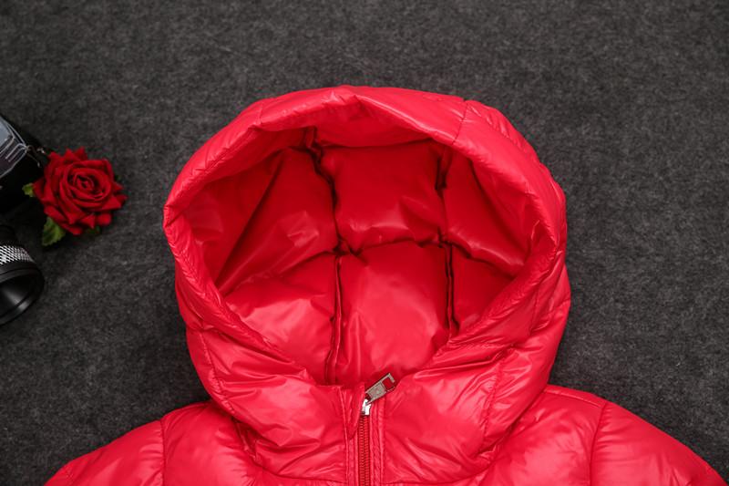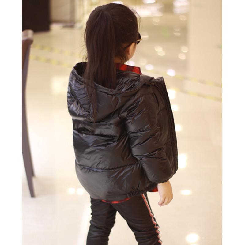 Outono e inverno bebê crianças usam casaco infantil com capuz terno de pão para meninos e meninas ultra leve engrossado curto elegante casaco da moda
