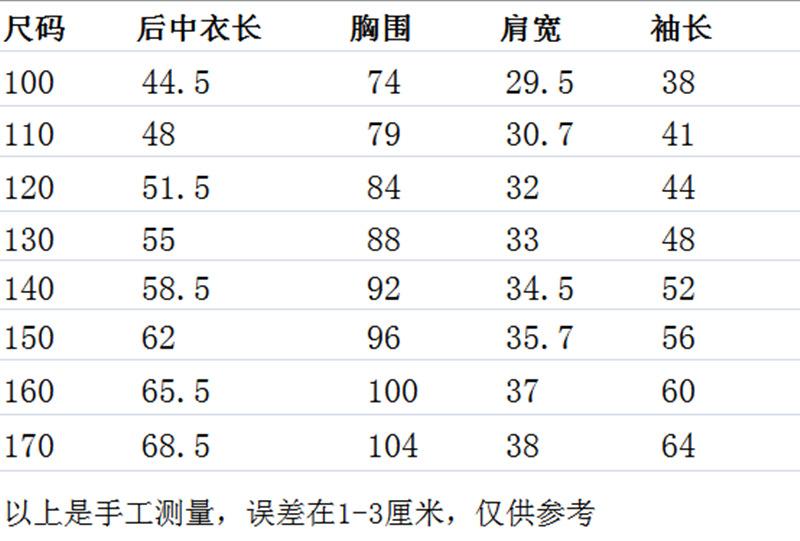 100cm, 110cm, 120cm, 130cm, 140cm, 150cm, 160cm, 170cm