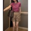 Shorts de Algodão Lavado de Cintura Alta Xia Kuai Tuan Mju 2023 Primavera e Verão Calças Casuais Finas Femininas