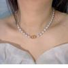 Colar feminino de aço titânio de alta qualidade, elegante, de luxo, com pérolas e nariz de porco, estilo europeu e americano, transfronteiriço