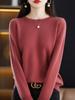 Suéter Básico Feminino de Lã Pura com Gola Redonda Manga Longa Estilo Básico Simples Gola Redonda Pequena Lã Moda Versátil