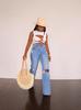 2025 Vendas Diretas de Fábrica Pronta Entrega Transfronteiriço Novo Amazon Estação Independente Jeans Elegantes Rasgados de Perna Larga para Mulheres