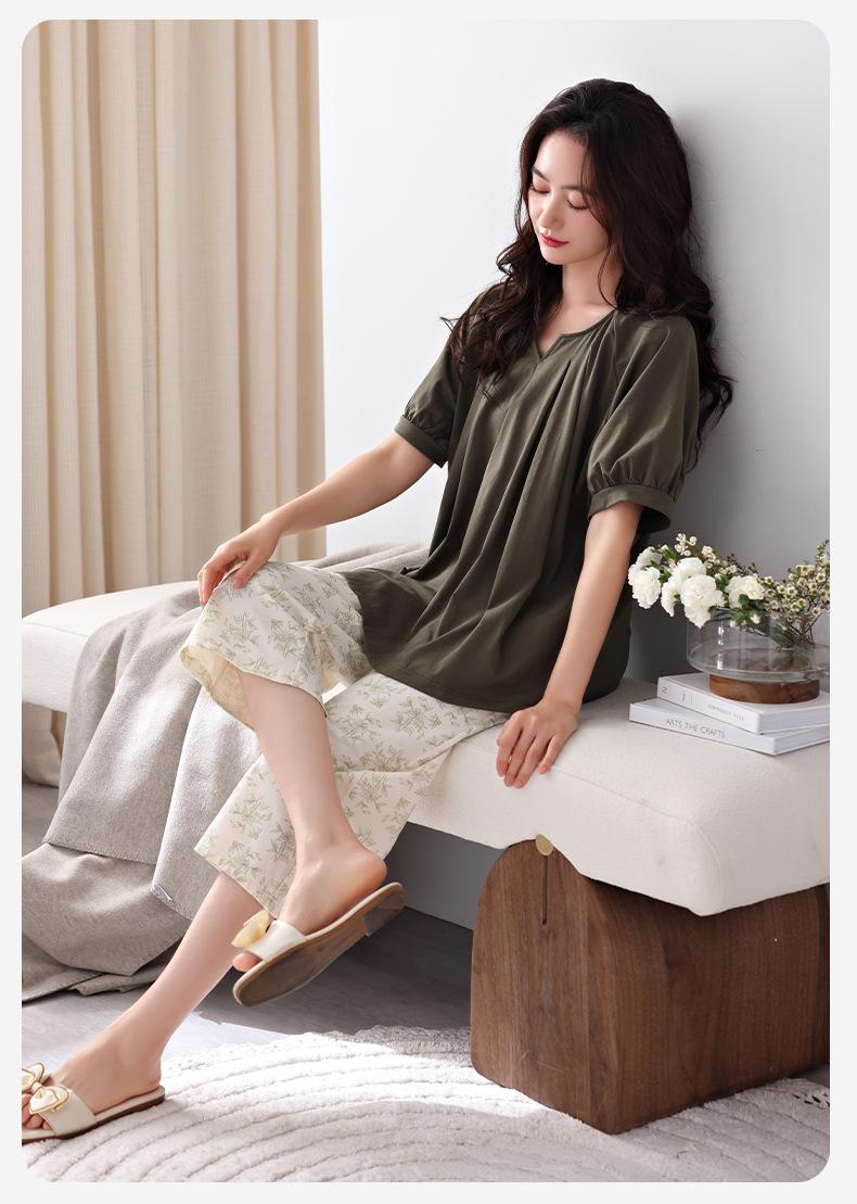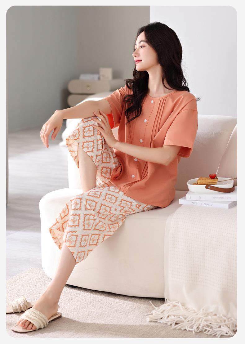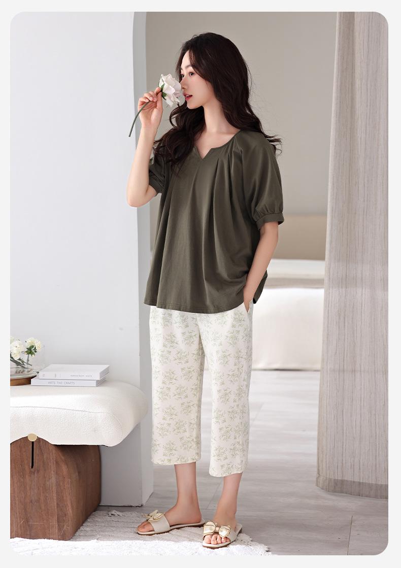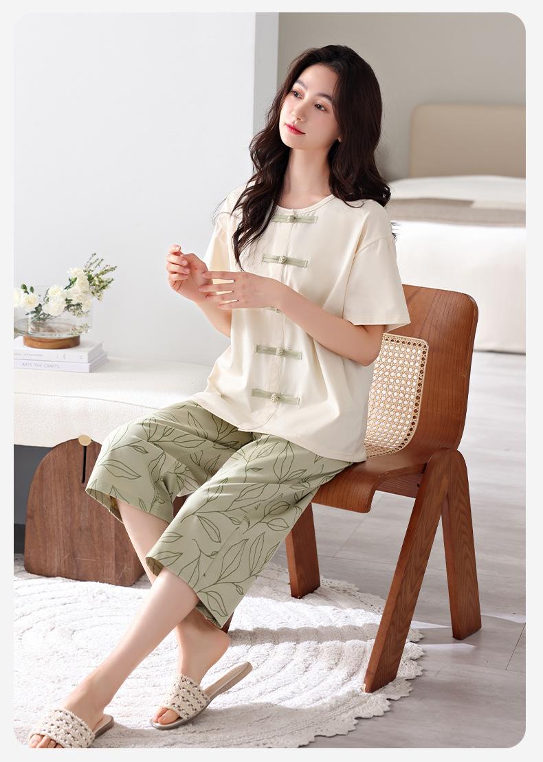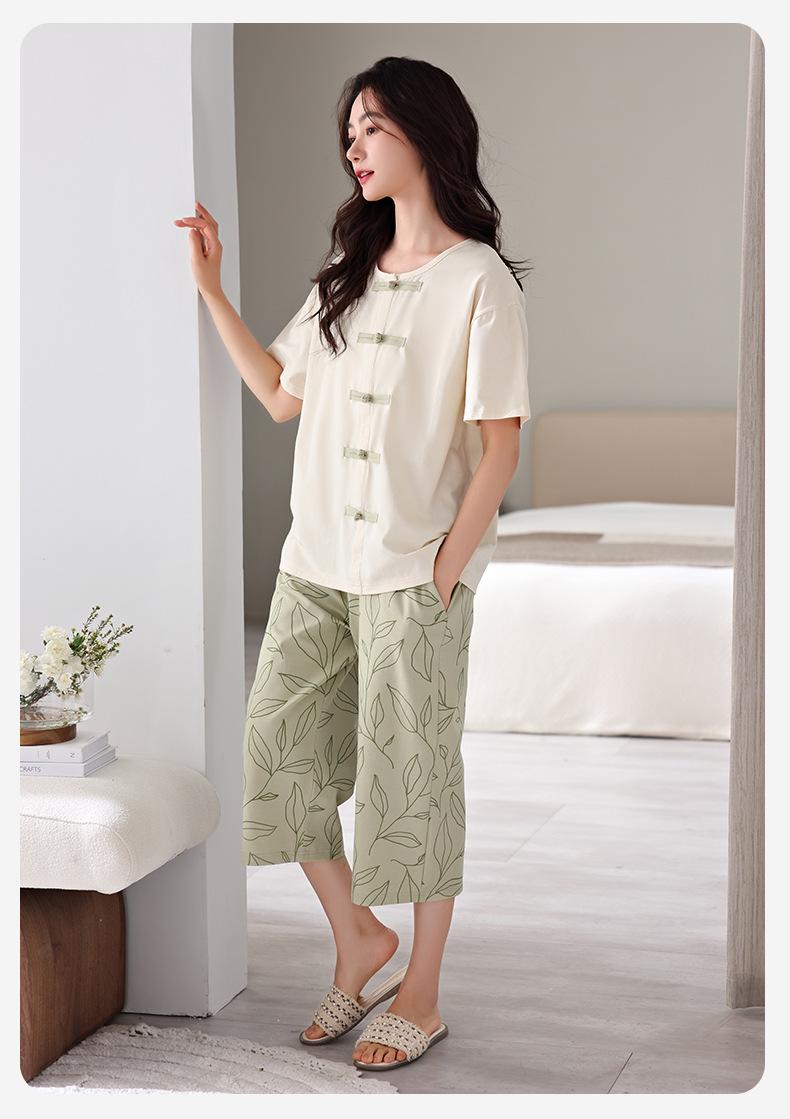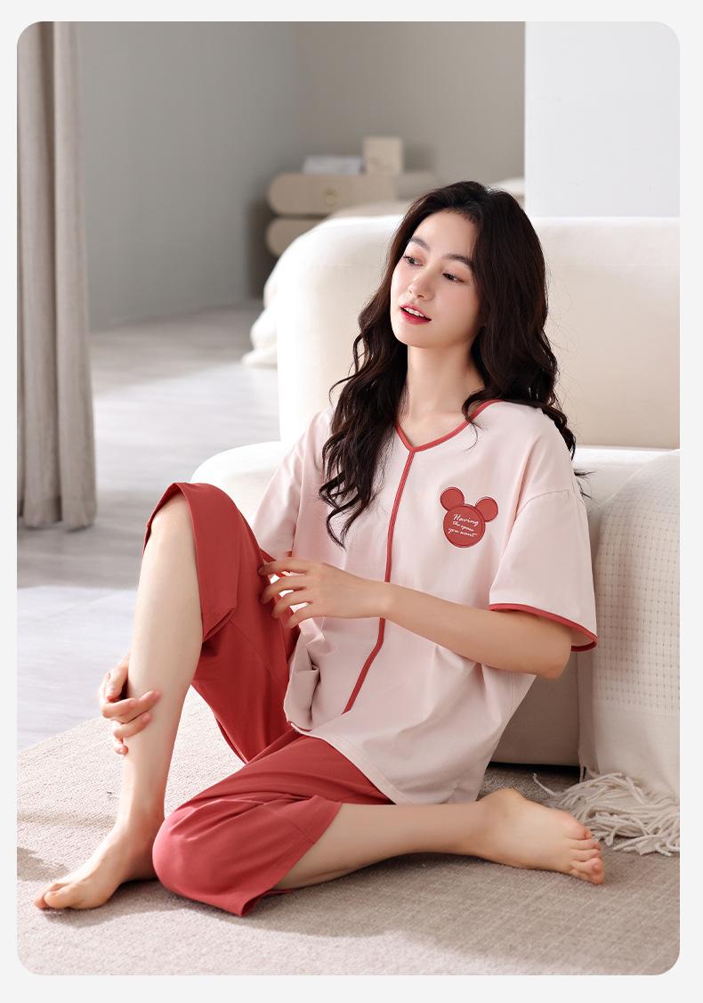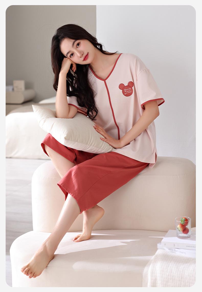 O verão pode ser usado fora fresco algodão pijamas mulheres de manga curta calça cropped soft skin-friendly Lycra Cotton roupas domésticas femininas