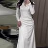 Novo 2024 Primavera e Verão Roupa Transfronteiriça Amazon Europeia e Americana Tomara que Caia Ombro Único Sexy Fenda Vestido Bainha Larga para Mulheres