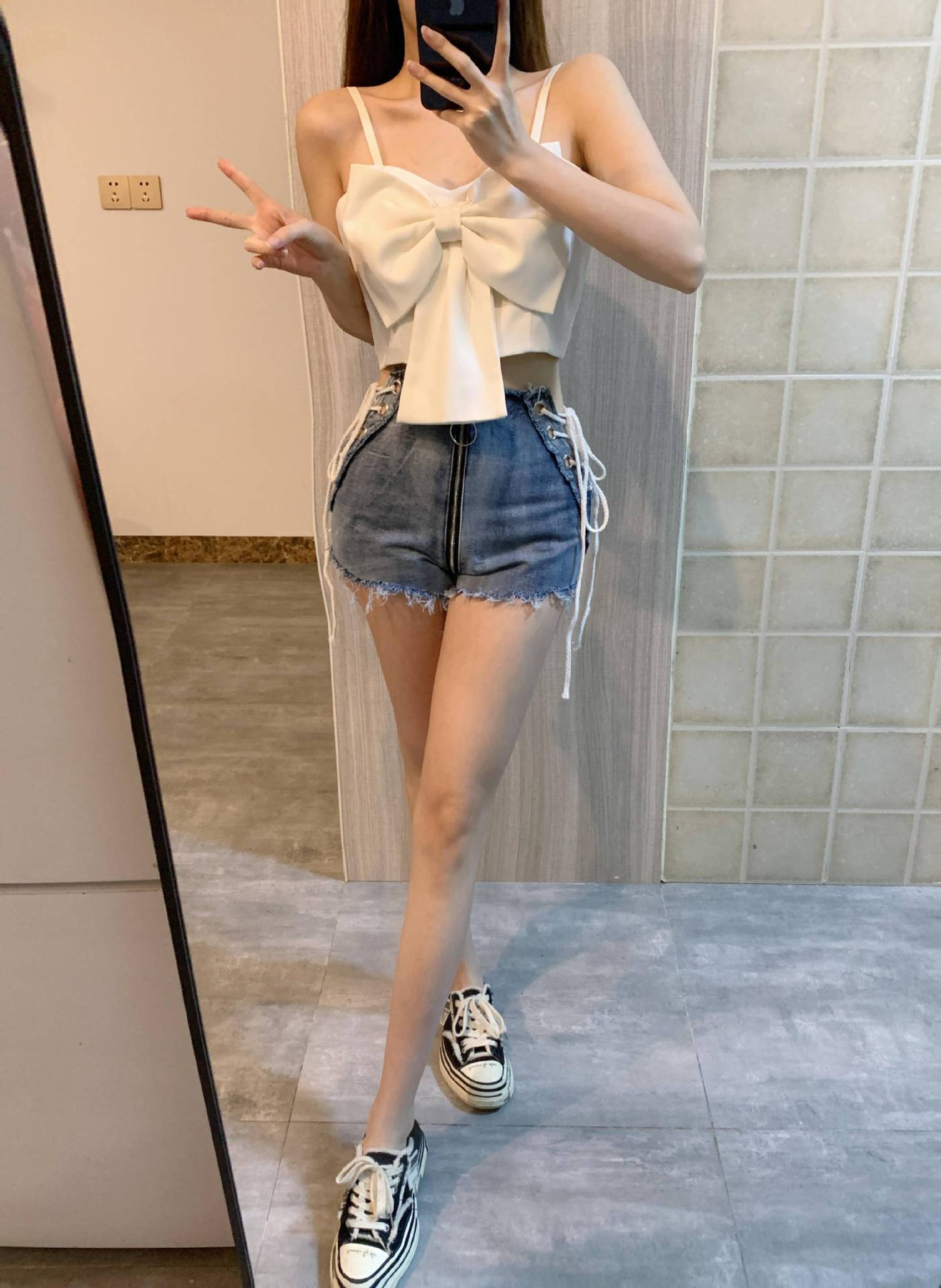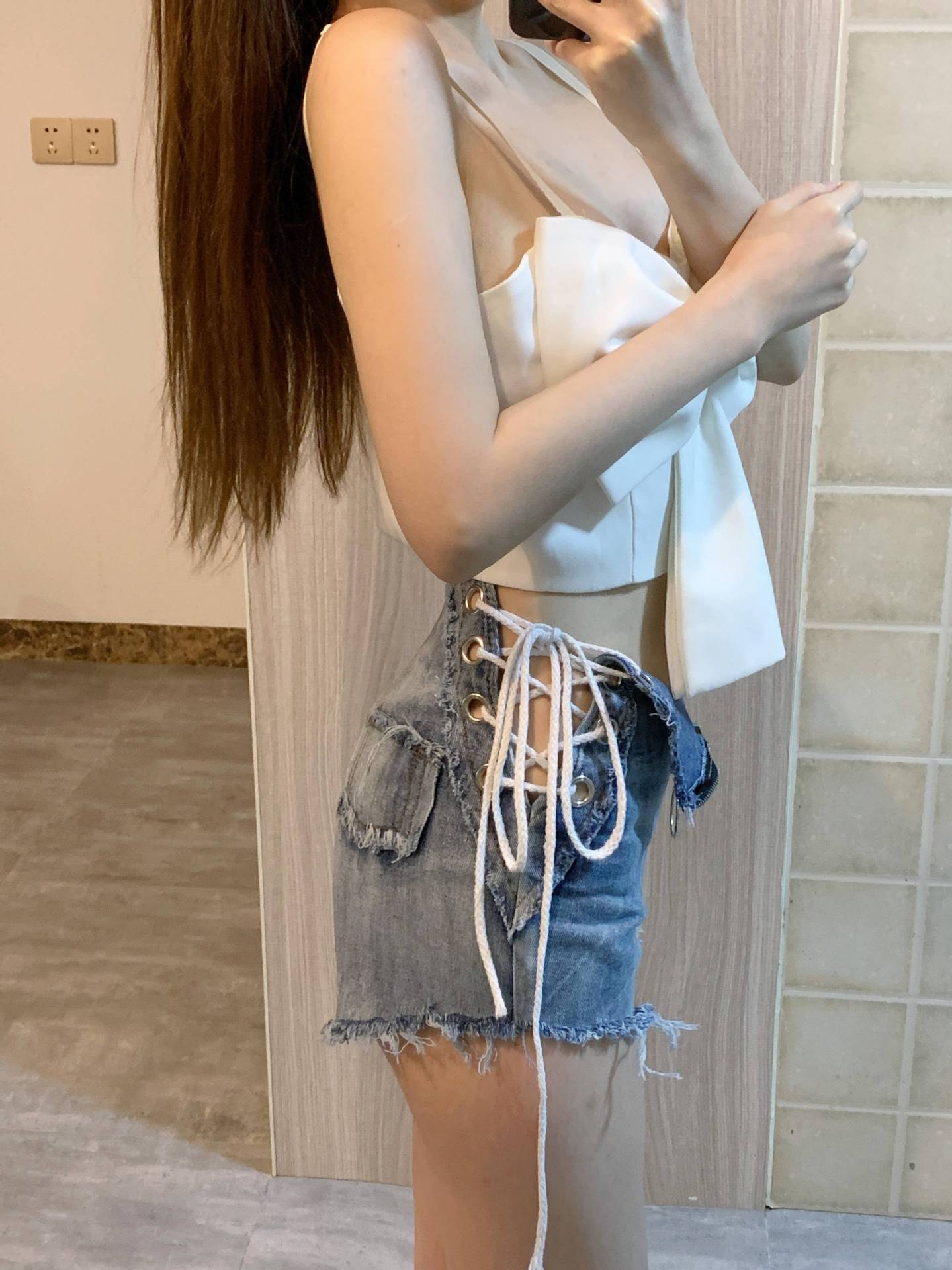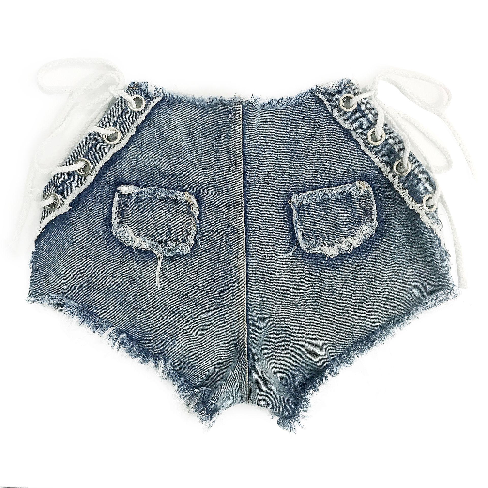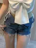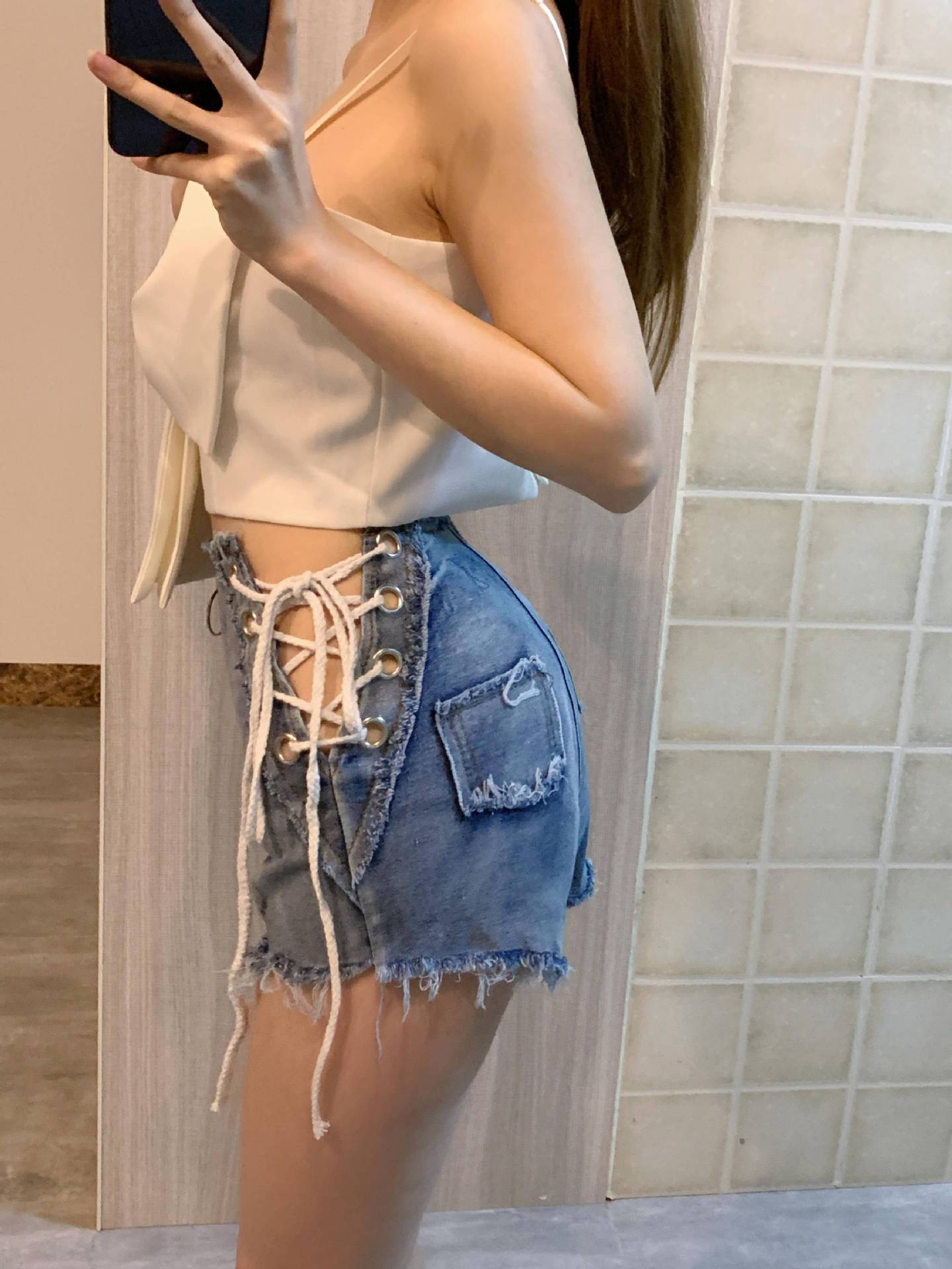 Verão europeu e americano e outono quente menina cintura alta design emagrecendo shorts jeans femininos hot pants mulheres sexy renda-up jeans