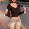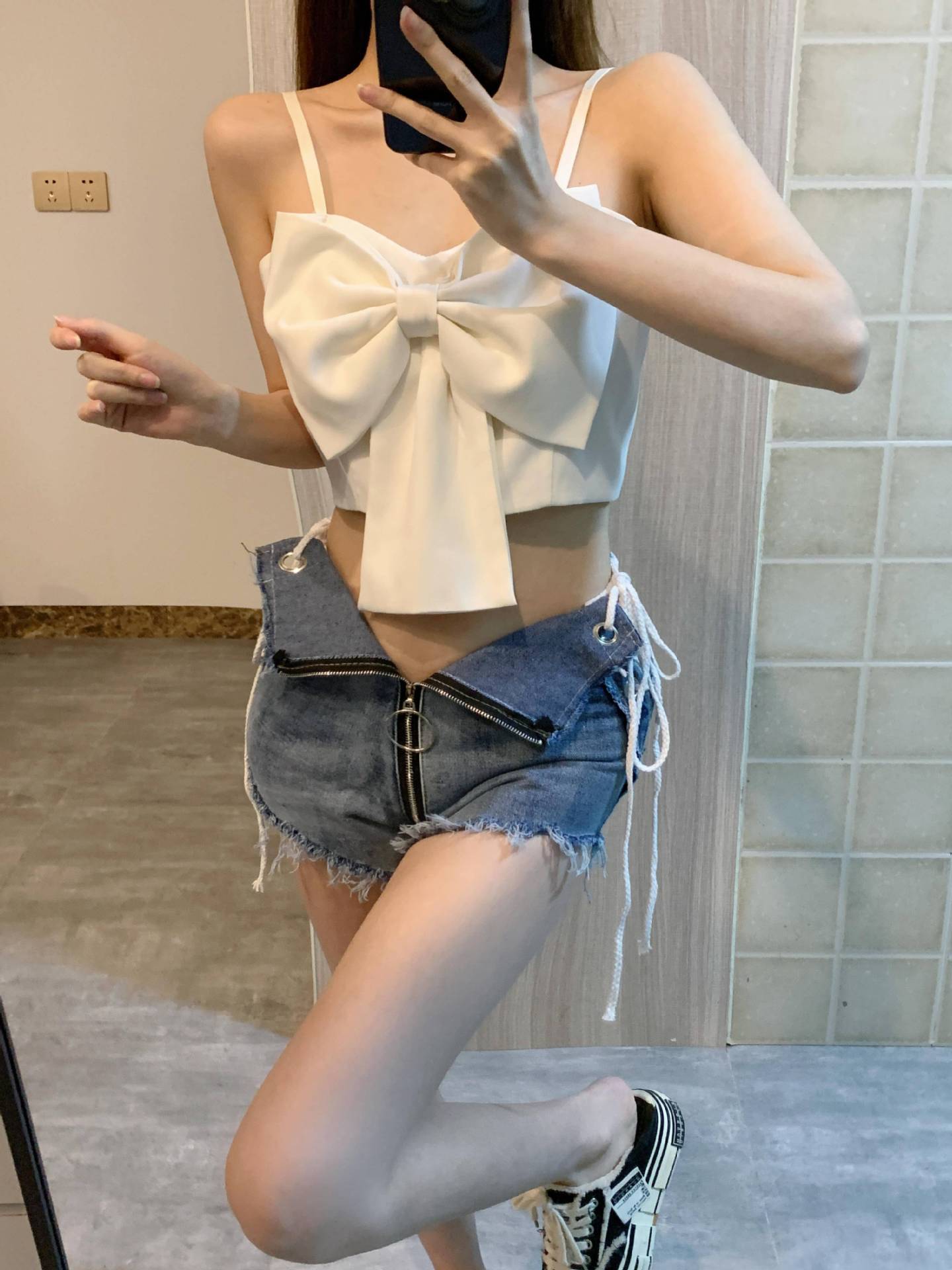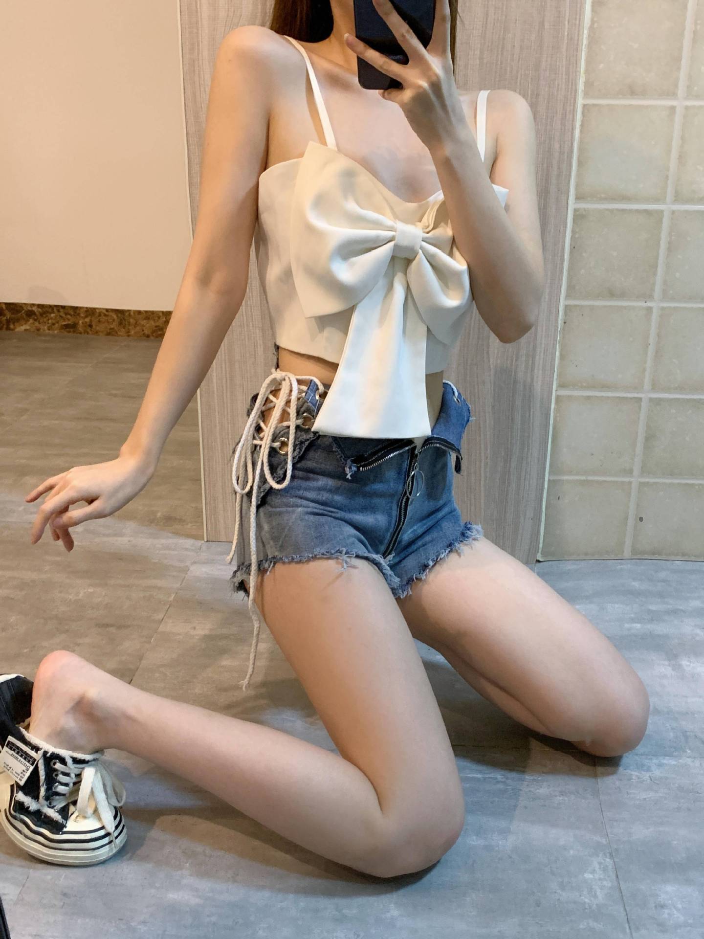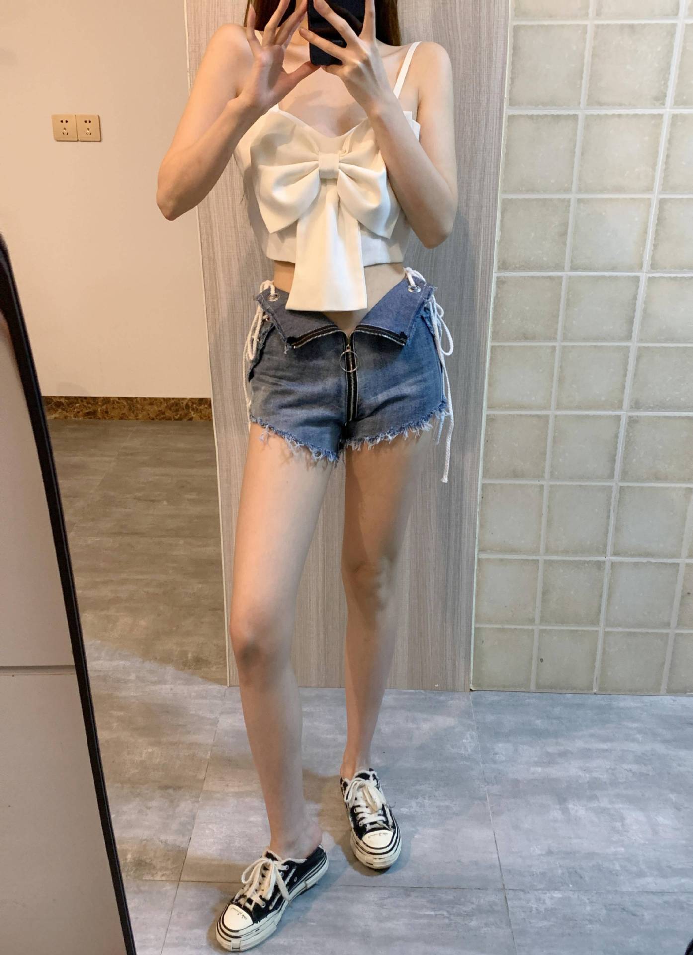 Verão europeu e americano e outono quente menina cintura alta design emagrecendo shorts jeans femininos hot pants mulheres sexy renda-up jeans