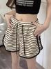 Calção esportivo listrado feminino verão 2024 Nova cintura alta casual folgada plus size calça perna larga emagrecendo hot pants linha A
