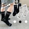 Meias novas de outono e inverno para meninas, grandes, estilo coreano simples, listradas com letras em duas cores, preto e branco, fabricantes de meias femininas em estoque, atacado