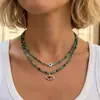 Colar Retrô Europeu e Americano com Contas Verdes e Pedra Natural Verde Flash para Mulheres, Design de Nicho de Luxo Leve Colar Olho de Diabo