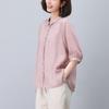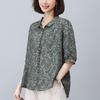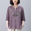 Camisa de Râmia Feminina Manga Curta 2024 Nova Verão Camisa Manga Curta Camisa Bordada Top Retrô Petite Mãe