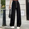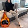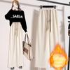 Calças europeias de veludo de algodão estreito de pernas largas outono e inverno forrado de lã meninas casuais novas calças femininas soltas calças retas drapeadas