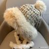 Gorro de malha feminino outono e inverno novo estilo coreano fofo smiley label imitação de pele de coelho chapéu frio quente engrossado pulôver chapéu de lã