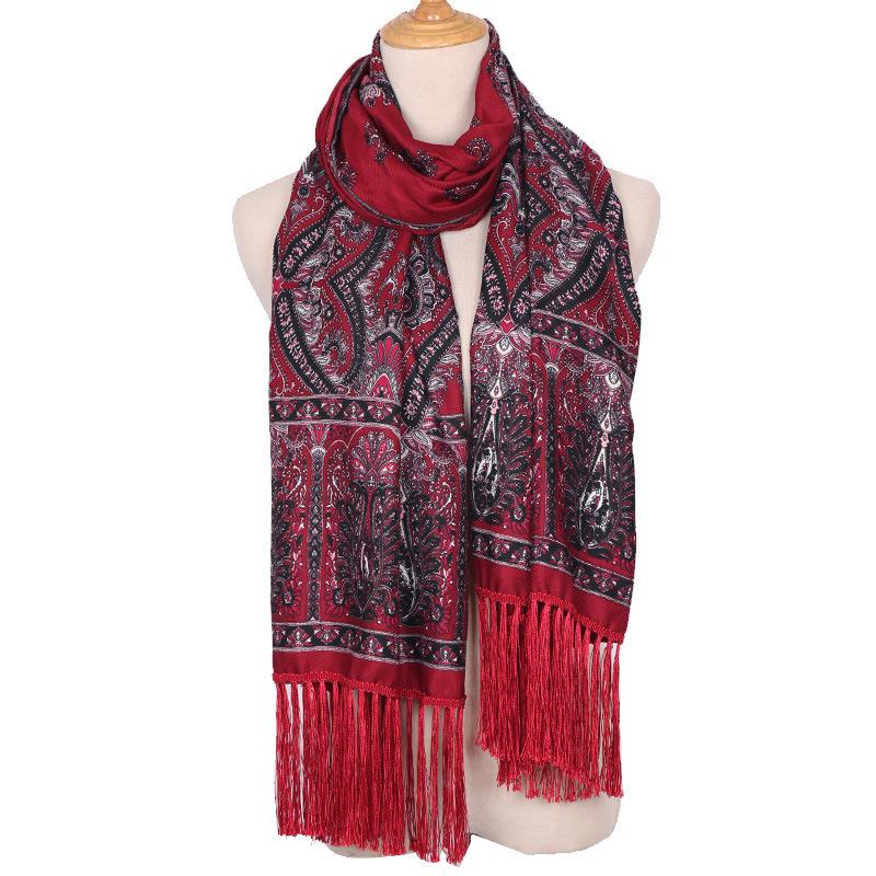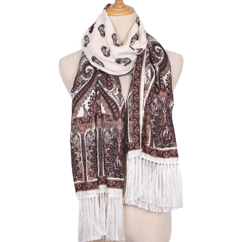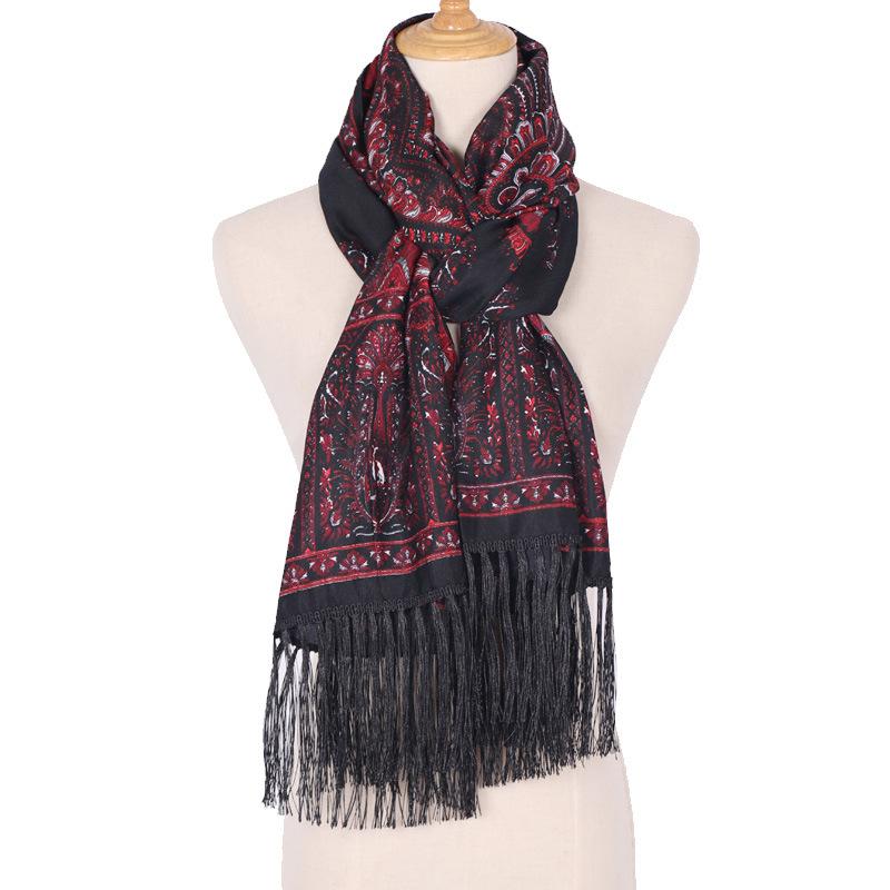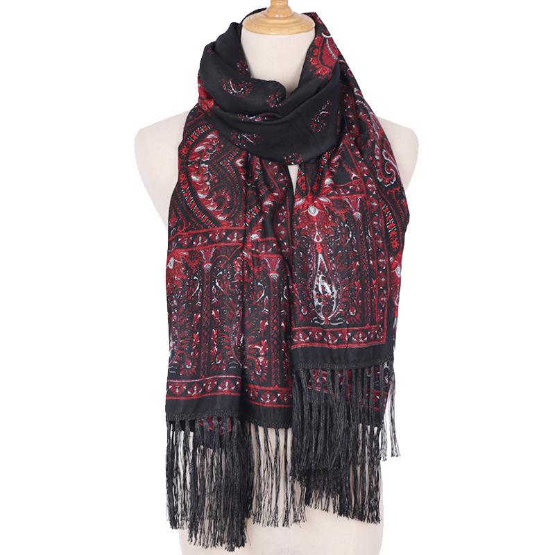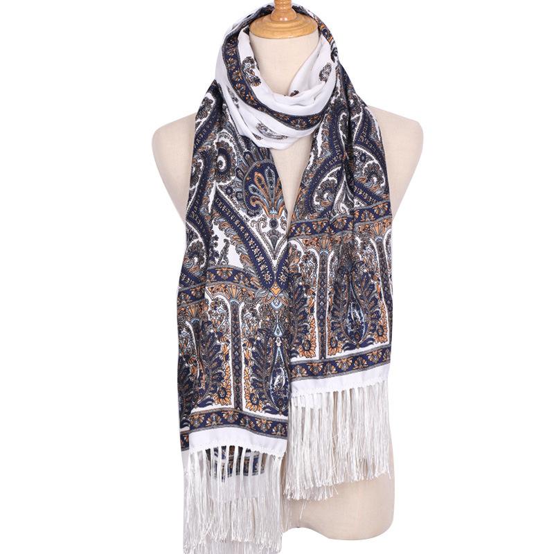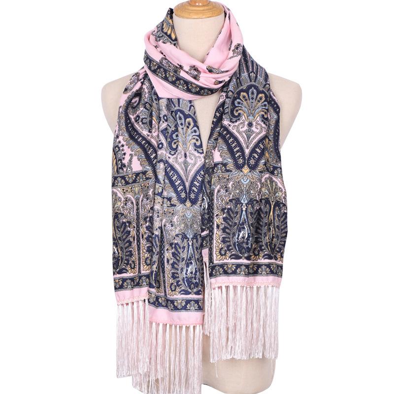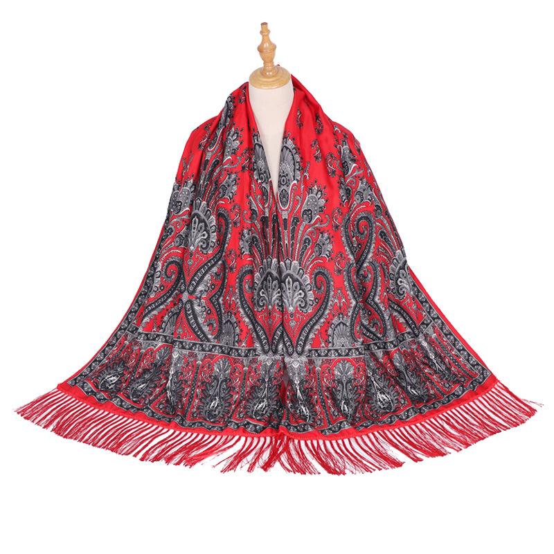 Cachecol Estampado Estilo Étnico Novo 2025 para Mulheres Primavera e Verão Xale Boêmio com Franjas Cachecol Longo Quente, Fashion e Versátil