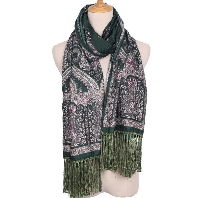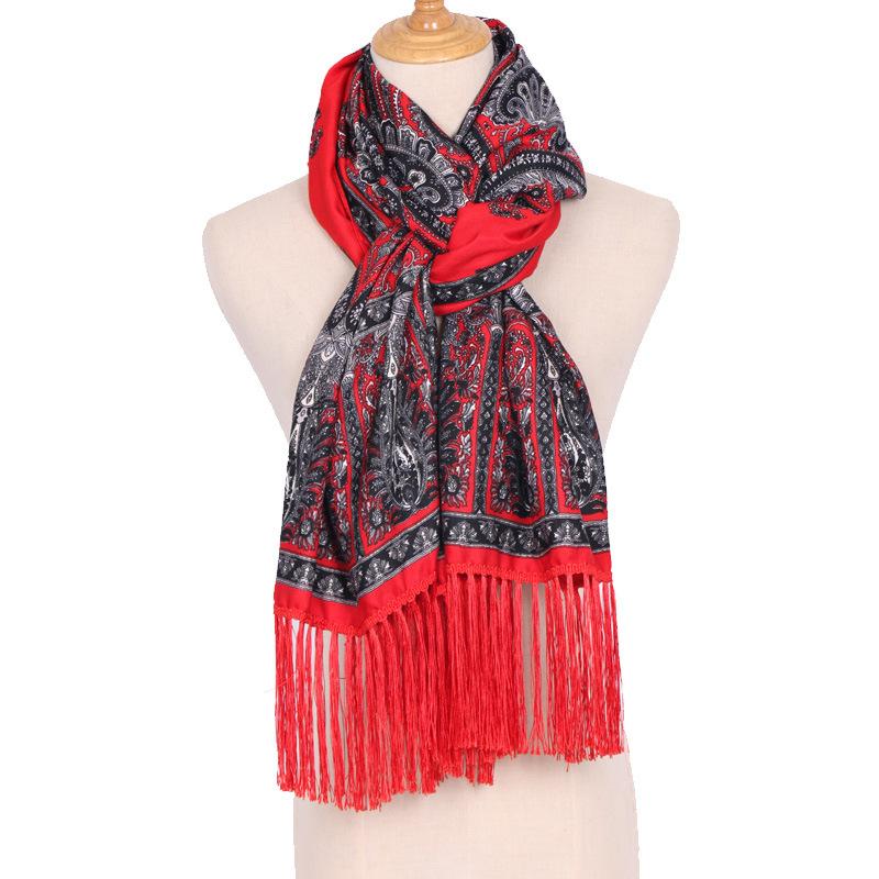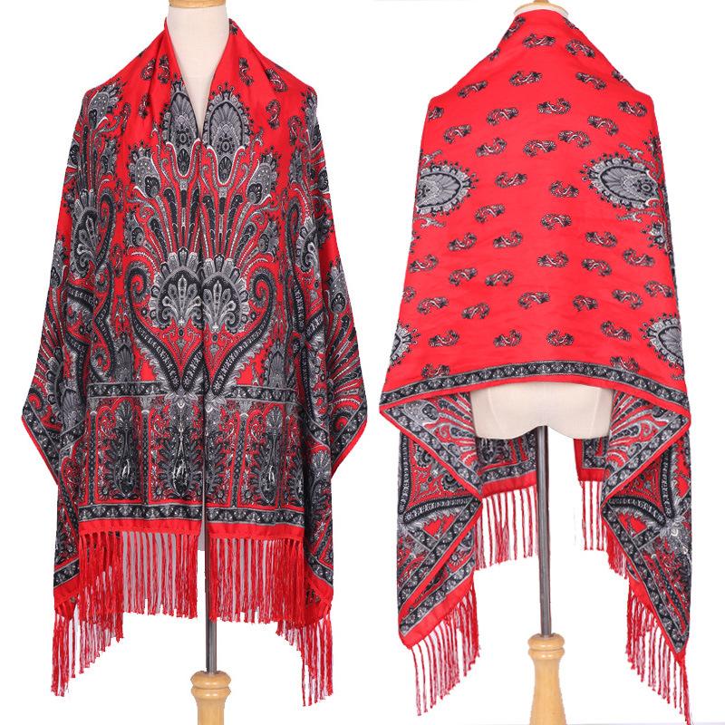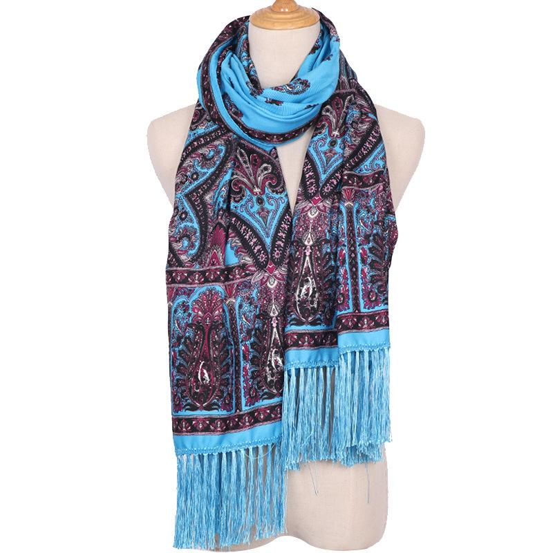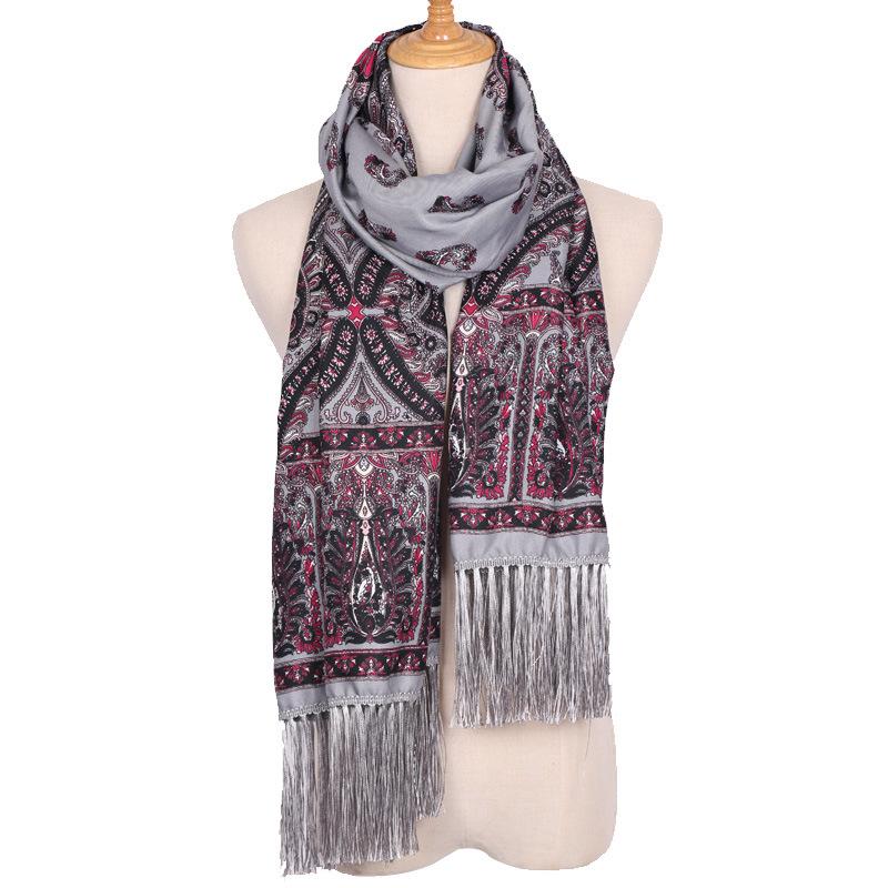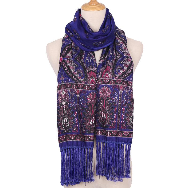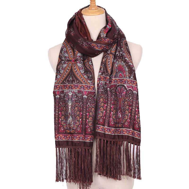Cachecol Estampado Estilo Étnico Novo 2025 para Mulheres Primavera e Verão Xale Boêmio com Franjas Cachecol Longo Quente, Fashion e Versátil
