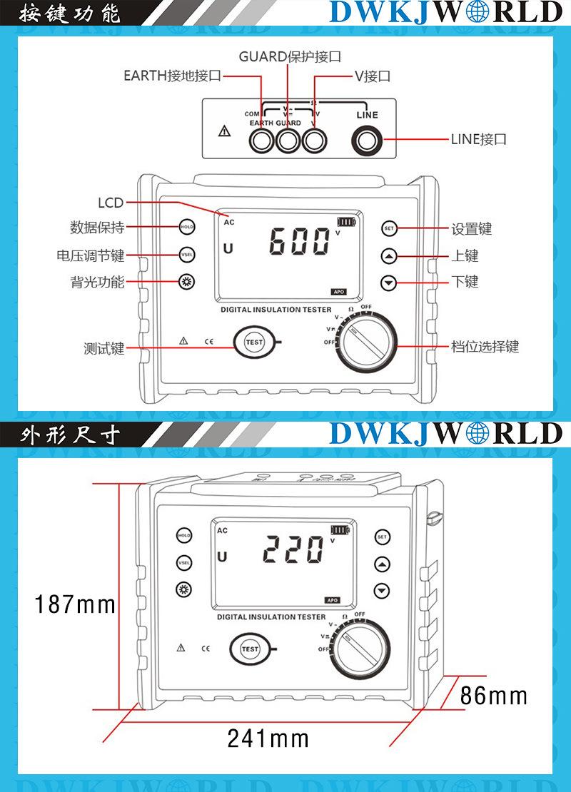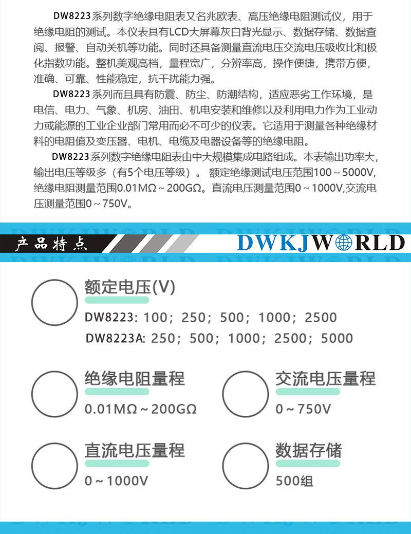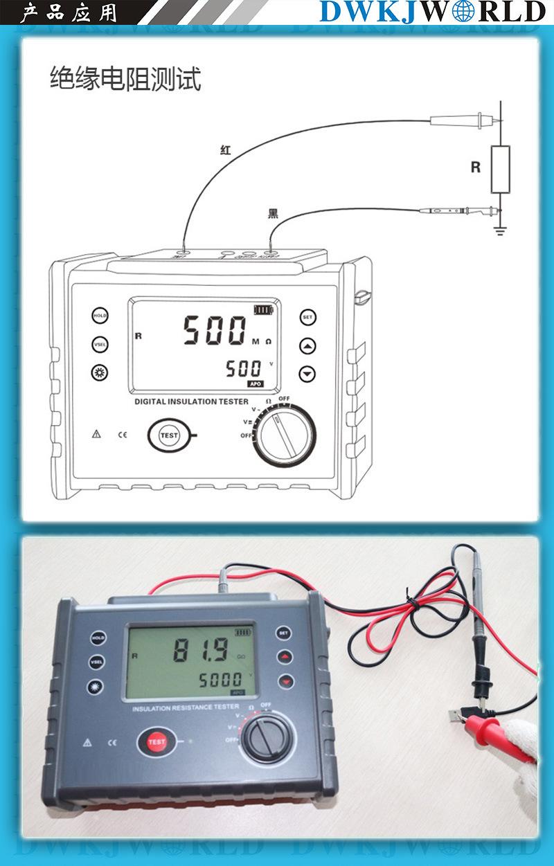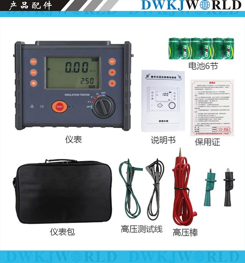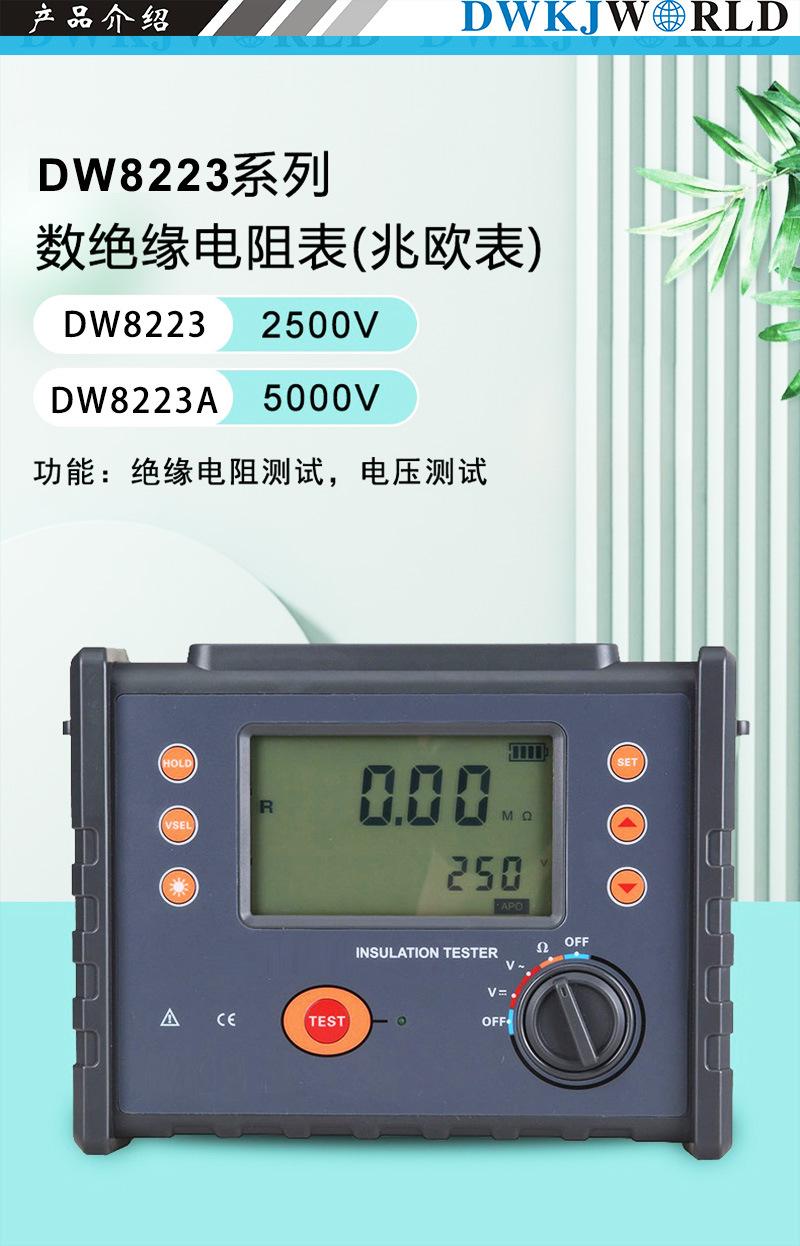 Dawan DWKJWORLD DW8223 Megôhmetro digital Megôhmetro de isolamento de alta tensão Testador de medidor de vibração eletrônico