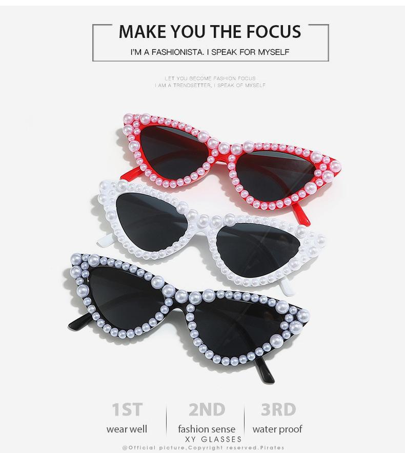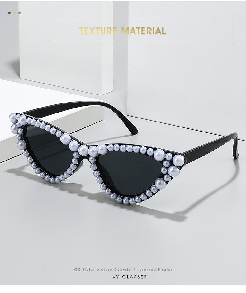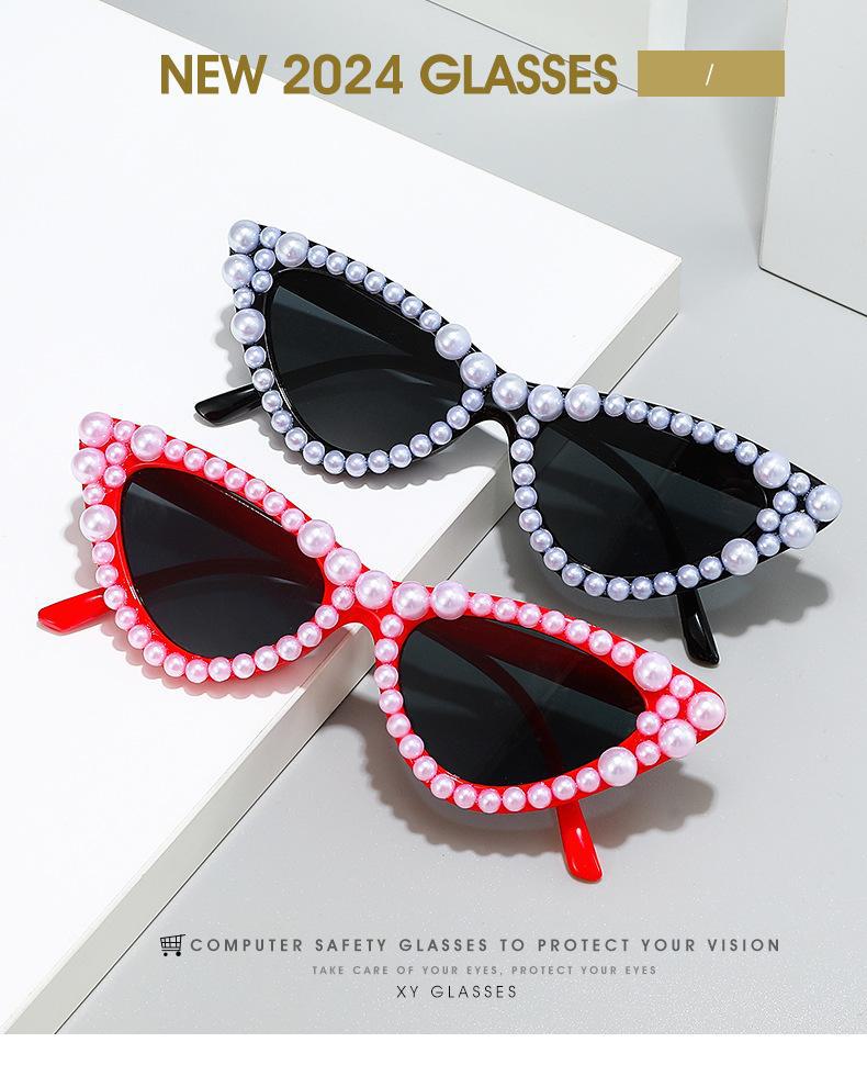 2024 verão nova moda artesanal óculos de sol personalidade europeia e americana imitação pérola hip hop olho de gato diamante óculos de sol mulheres