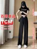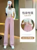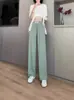 Ice Silk Pocket 2024 Calça Perna Larga Feminina Verão Nova Cintura Alta Fina Emagrecendo Calças Casuais Retas Soltas