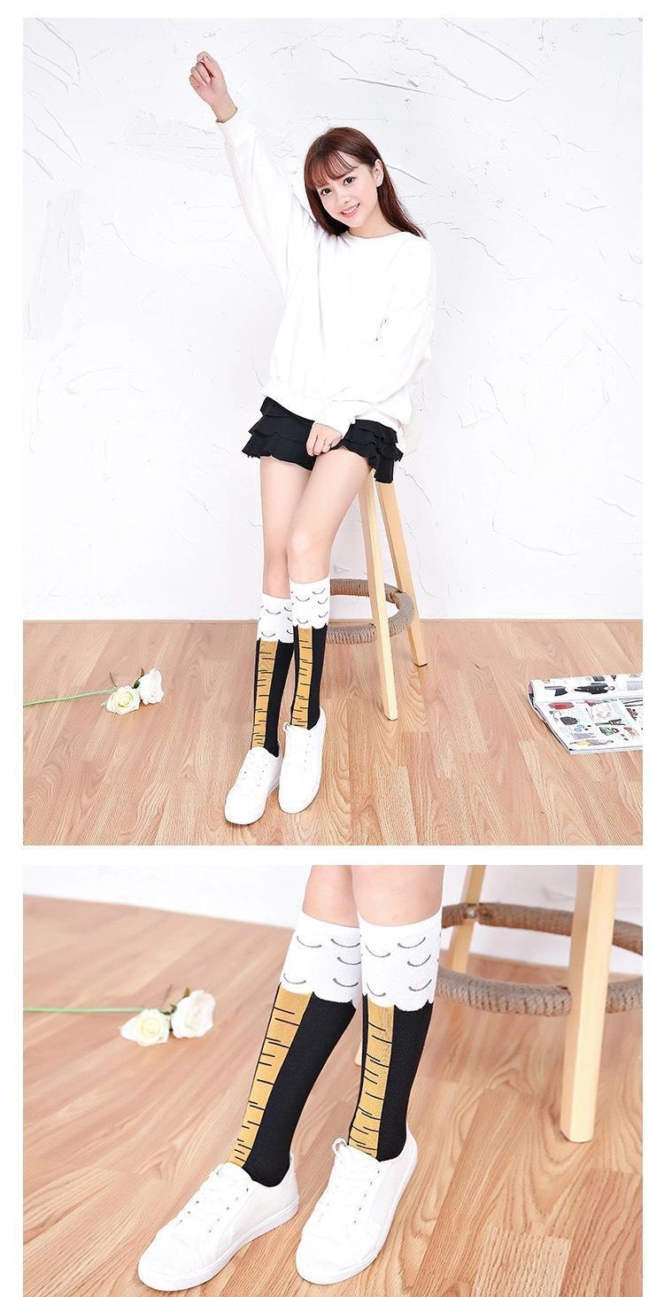 Meias de pés de frango meias de joelho engraçado das mulheres Net vermelho avestruz padrão joelho perna engraçado pés de frango meias para o outono e inverno