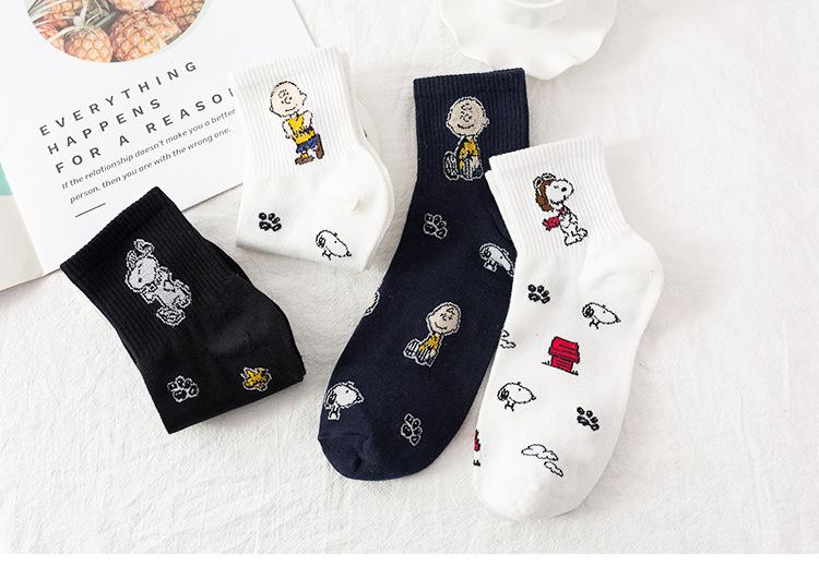 Meias femininas primavera e verão novo versão coreana de animação de desenho animado cachorrinho meias femininas da moda atacado algodão absorvente de suor cano meias casuais femininas