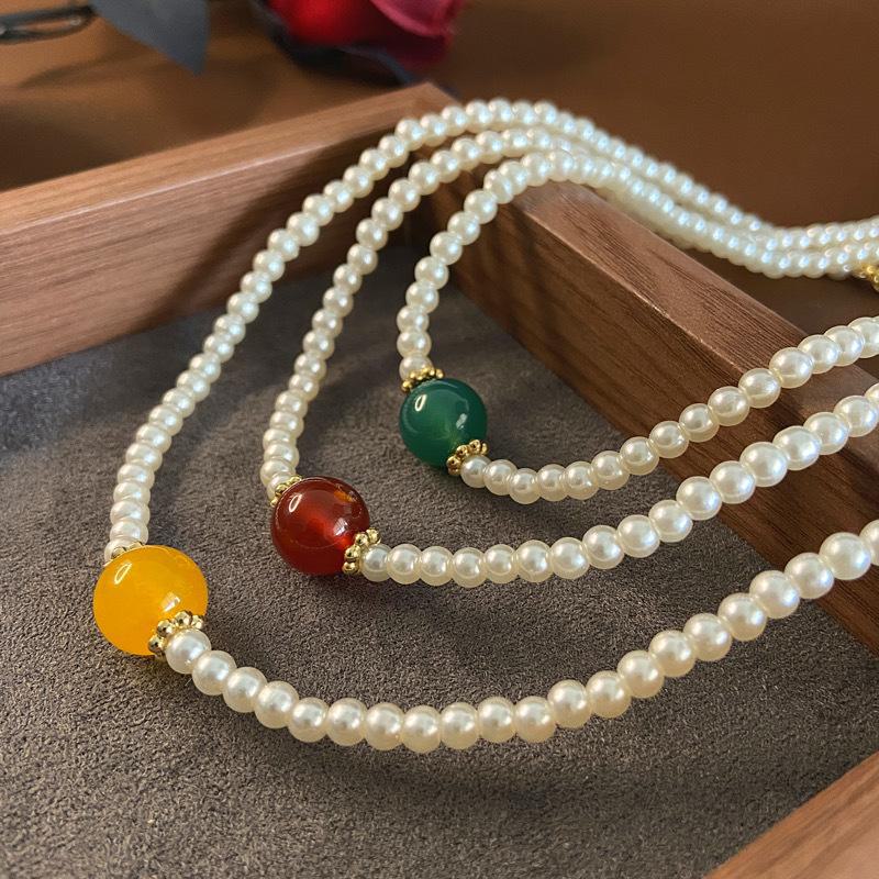 Novo Estilo Chinês Ágata Colar frisado Nicho Feminino Design de alta qualidade clavícula Cadeia Cadeia Leve Luxo Retro Colar Cadeia