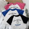 Algodão Color-block Color-block camiseta de manga curta Summer Boys' Cartoon Printed Top Baby's Ragged Half-sleeved Meninas vestido de verão