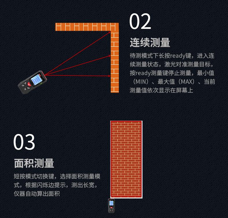 Este é um medidor de distância a laser portátil econômico, de tamanho pequeno e fácil operação. Ele pode medir rapidamente comprimento, área e volume com apenas um clique, permitindo que você veja os resultados da medição rapidamente em qualquer ambiente. O corpo é pequeno e bonito, do tamanho da palma da mão, fácil de transportar, com precisão de ± 2 mm e 99 armazenamento de dados. Basta um clique para medir a distância, o que é rápido e simples.
