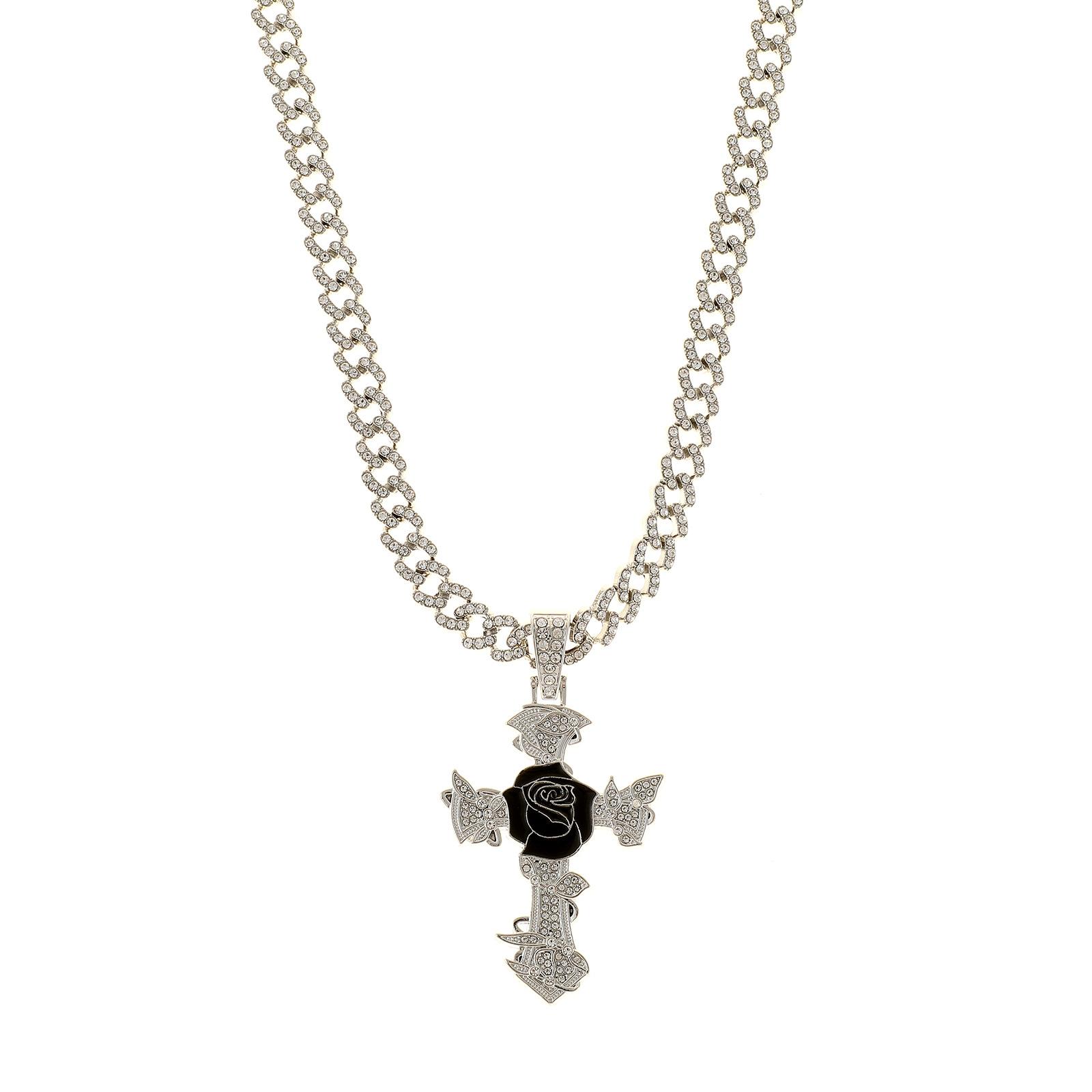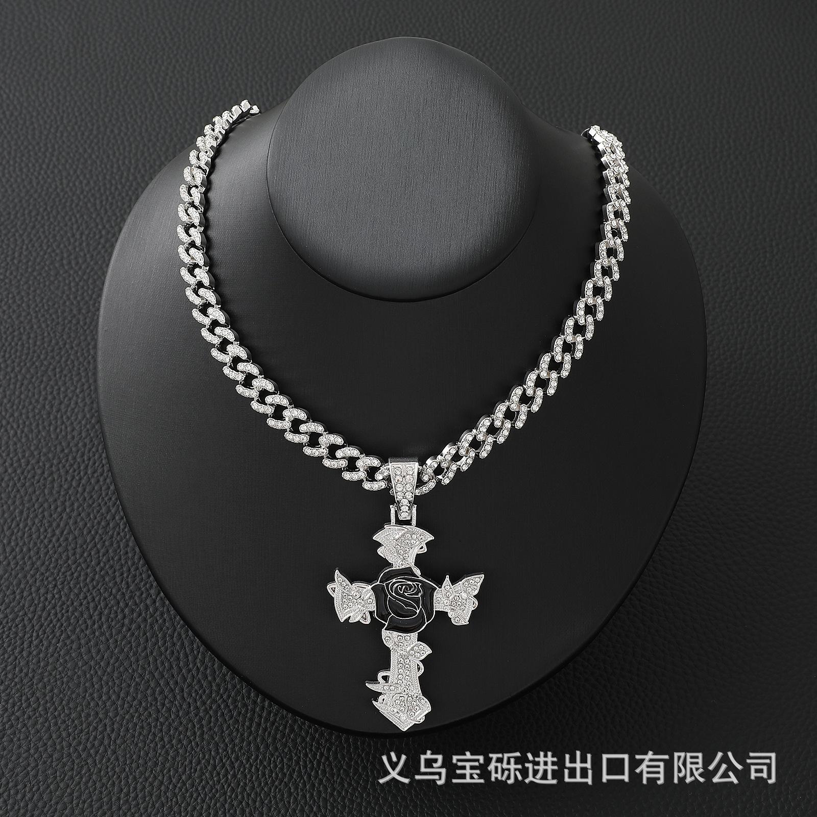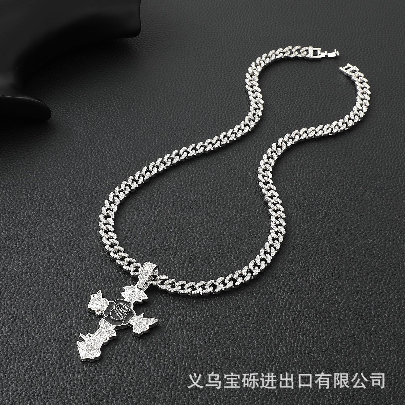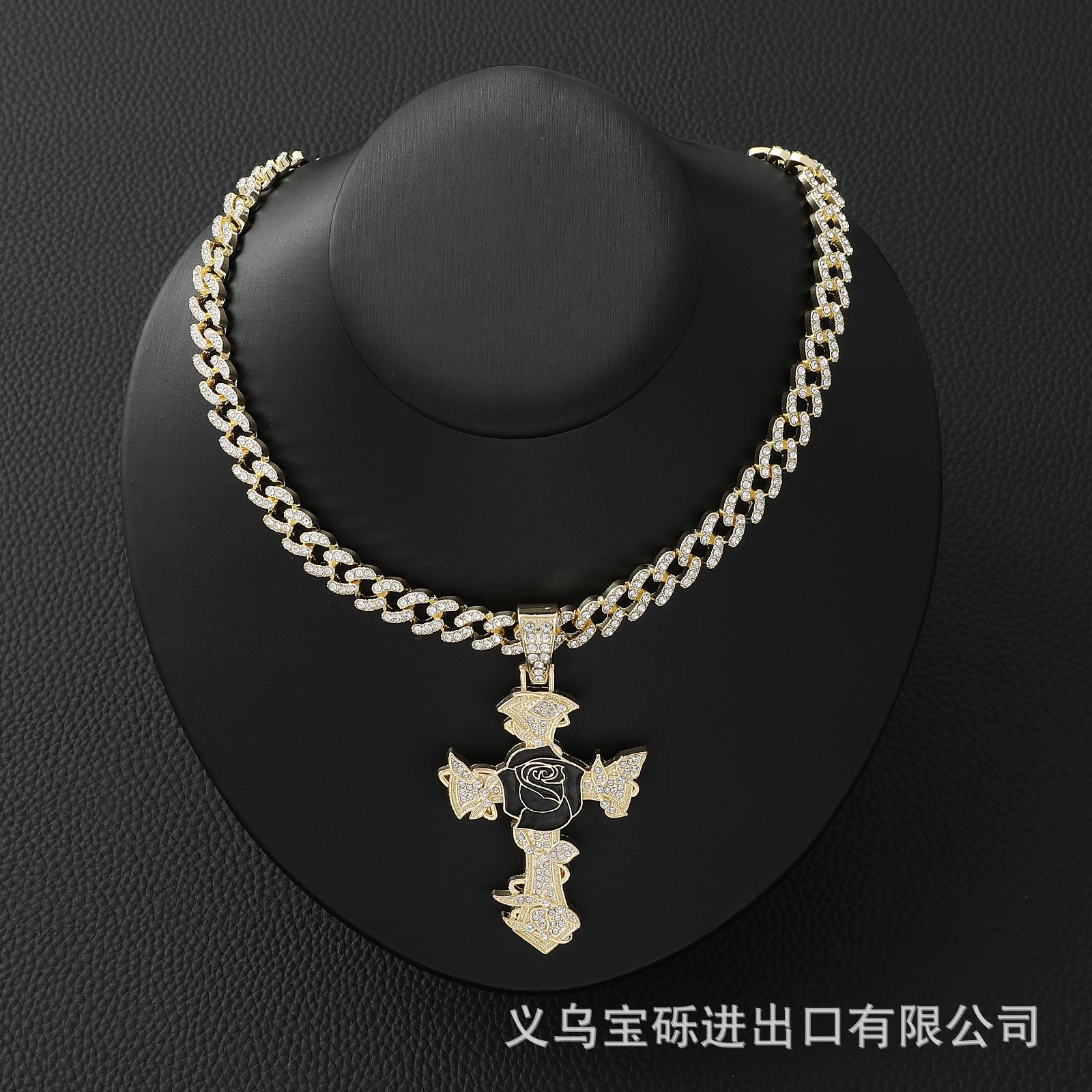 Cross-border Colar de Hip Hop para a Europa e América Personalidade Flash Diamante Cubano Corrente Rosa de Ouro Pingente Cruz Hip Hop Joias