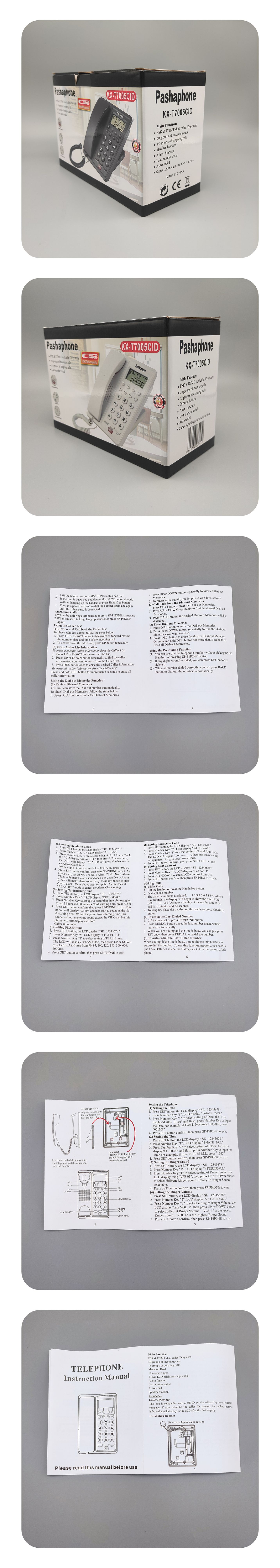 Descrição funcional: Exibição de identificação de chamadas, discagem rápida de números fixos armazenados, chamada viva-voz, volume de toque de viva-voz ajustável, rediscagem do número mais recente, função de corte rápido (usada com extensão de transferência), interface de linha direta dupla, pode se conectar à extensão (viva-voz e viva-voz)