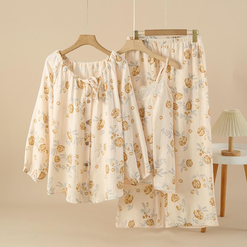 Pijamas femininos, gaze de algodão de três peças podem ser usados fora da coreana cross-border roupas domésticas atacado primavera e outono verão roupas domésticas
