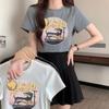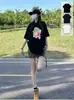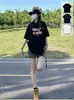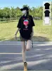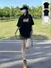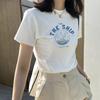 Mulheres penteadas algodão manga curta camiseta feminina americana de manga curta camiseta feminina marca de moda shoulder top feminino de manga curta 220g algodão