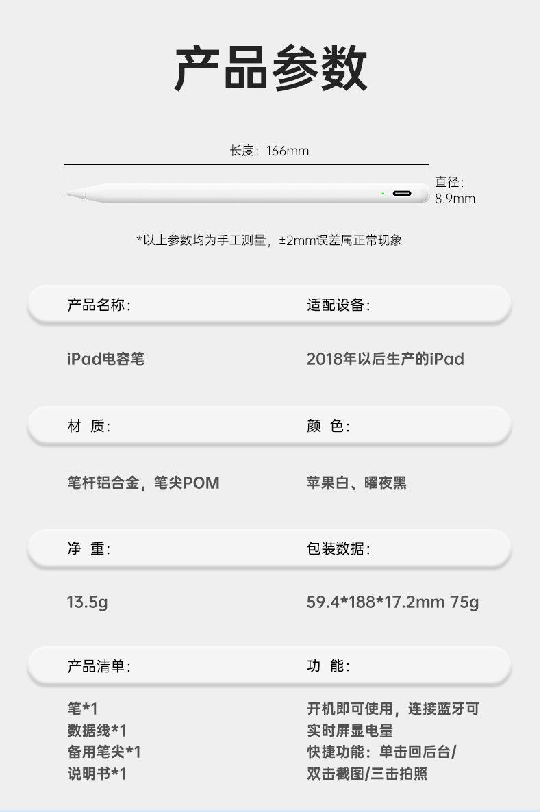 Bluetooth intelligent control/anti-false touch IPAD special pen (white), Bluetooth intelligent control/anti-fa...